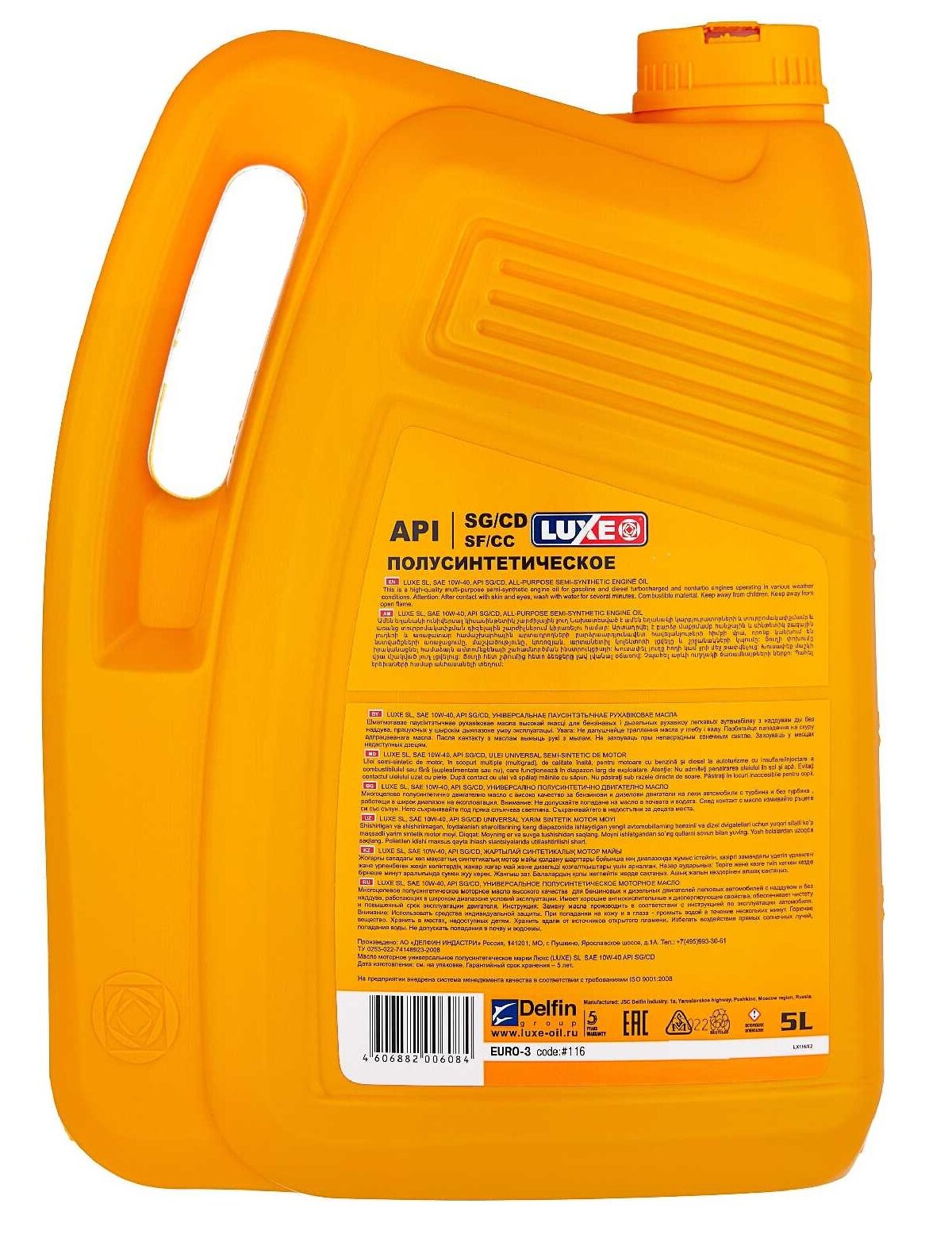Моторное масло полусинтетическое LUXE SL SAE 10W-40 API SG/CD, 5 литров информация: