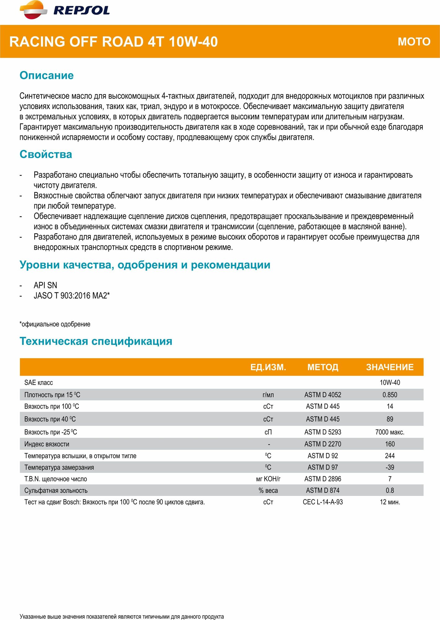 Racing Off Road 4T 10W40, моторное, Синтетическое, 1 л. информация: