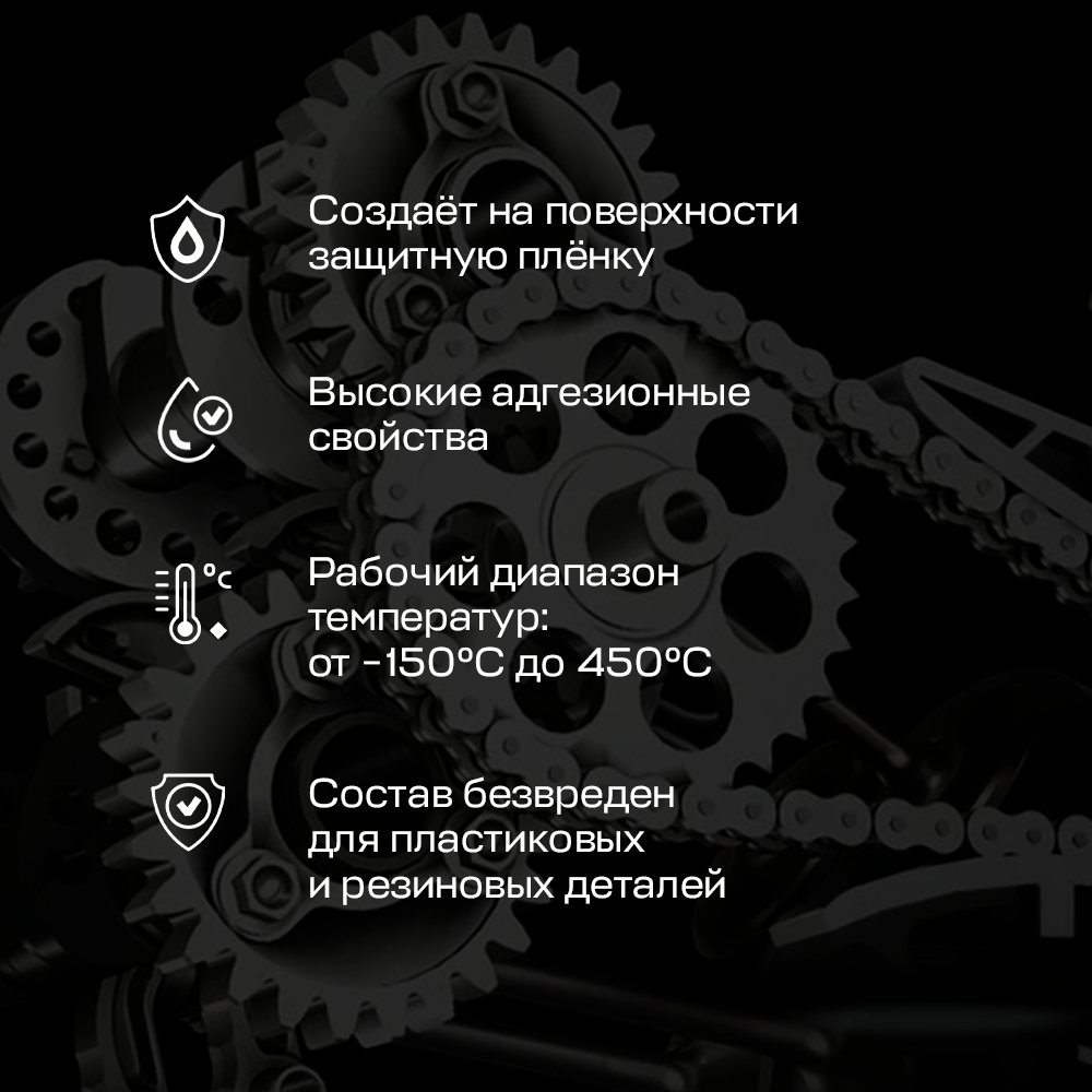 | Состав | Алифатические углеводороды >30%, коллоидный графит 5-15%, углеводородный пропеллент |