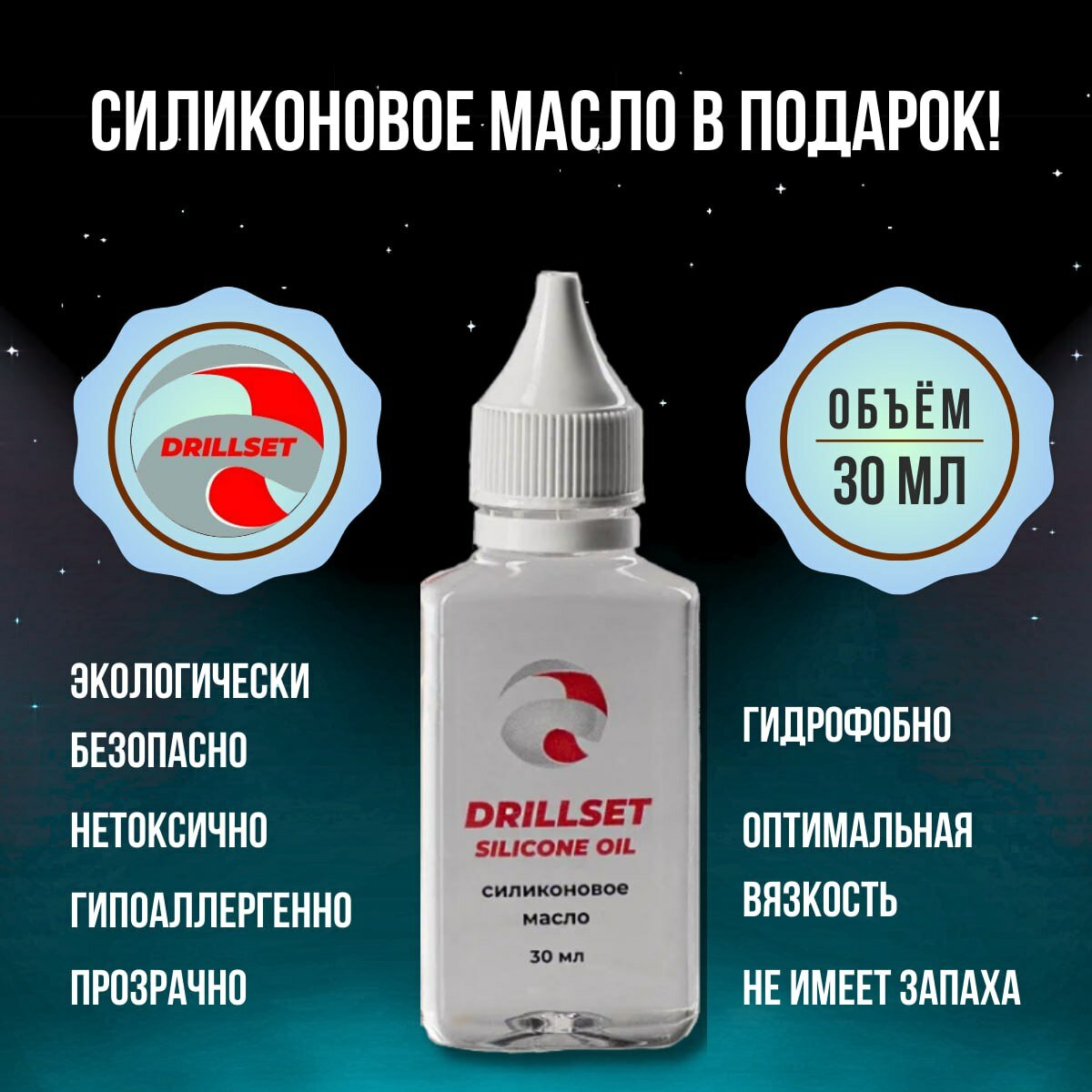 Силиконовая смазка DRILLSET Silicone Oil, водостойкая, морозостойкая, 30 мл