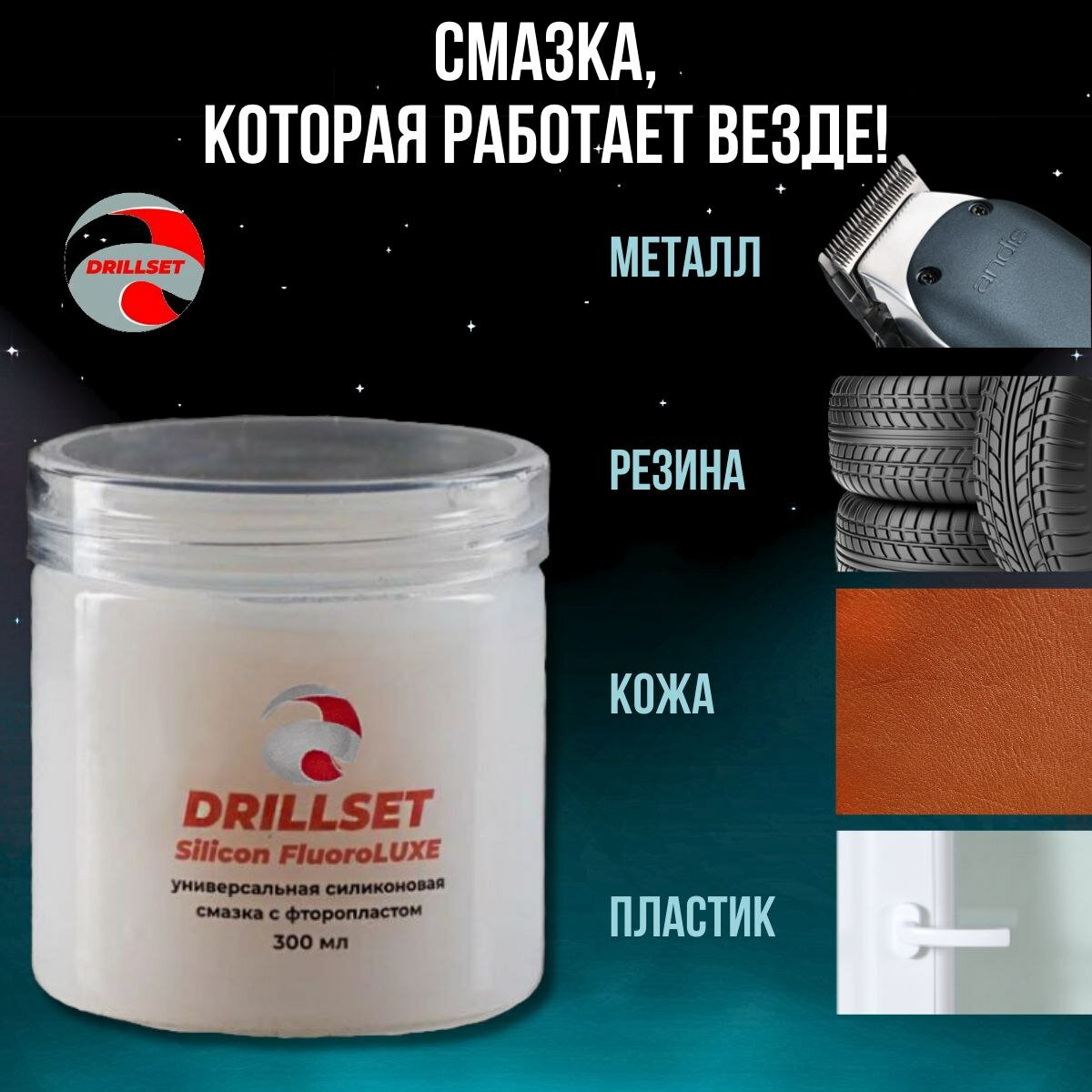 Силиконовая смазка DRILLSET SILICONE FluoroLUXE, с фторопластом, универсальная, 50мл 400 ₽