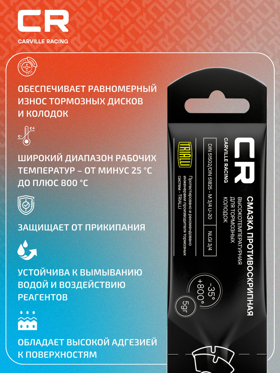 Смазка противоскрипная высокотемпературная, стик-пакет, 5 г G5150257 Carville Racing информация: