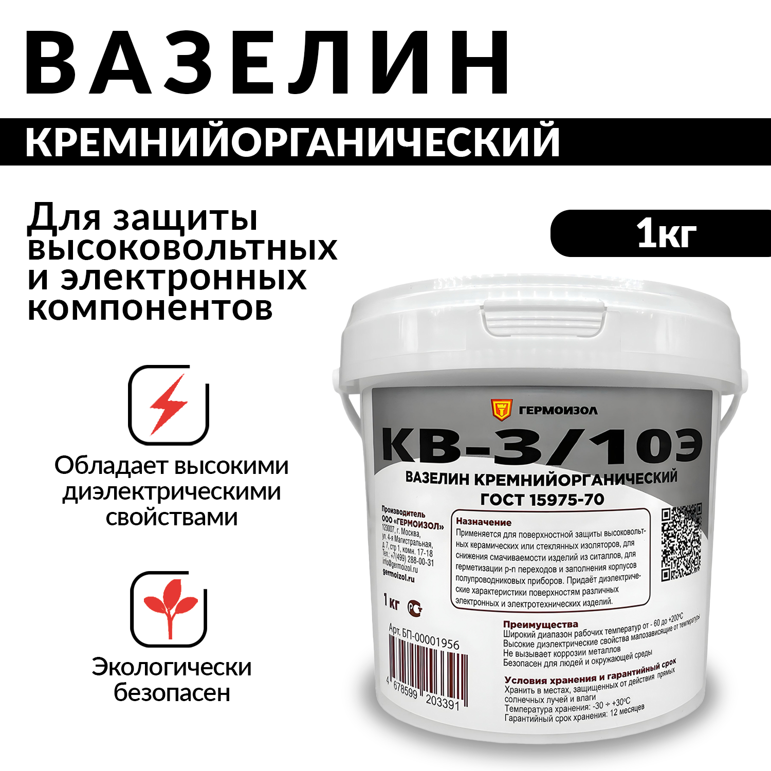 Смазка Вазелин технический кремнийорганический КВ-3/10Э 1кг информация:
