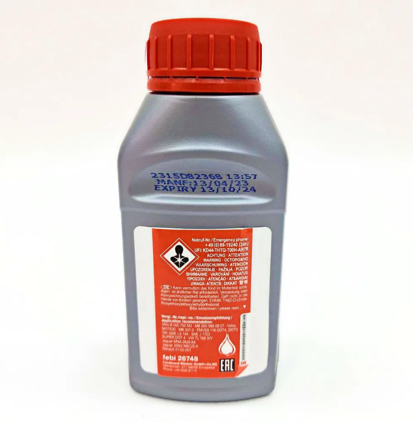 Мы выбрали 10 лучших цен на Тормозная жидкость FEBI Brake Fluid DOT4 Plus 0,25 л 26748. Перед тем как купить Тормозная жидкость FEBI Brake Fluid DOT4 Plus 0,25 л 26748 посмотрите найденные предложения из Яндекс Маркета и других сайтов на основе XML фидов.