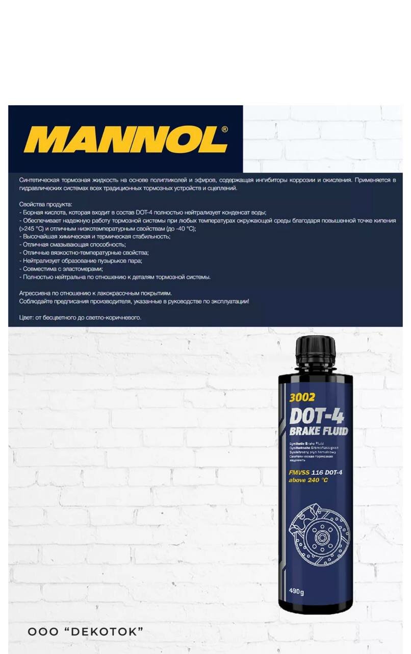 Тормозная жидкость Mannol 3002, гликолевая, вес 490 г, для широкого ряда авто информация: