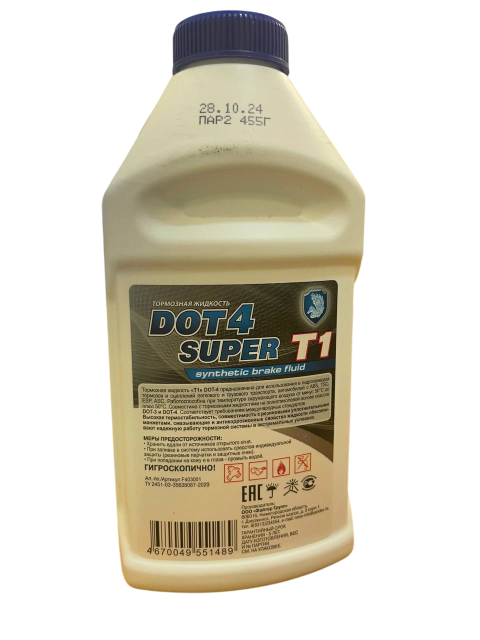 Тормозная жидкость "T1" DОТ-4 Super 455 гр гликолевая 1 штука информация: