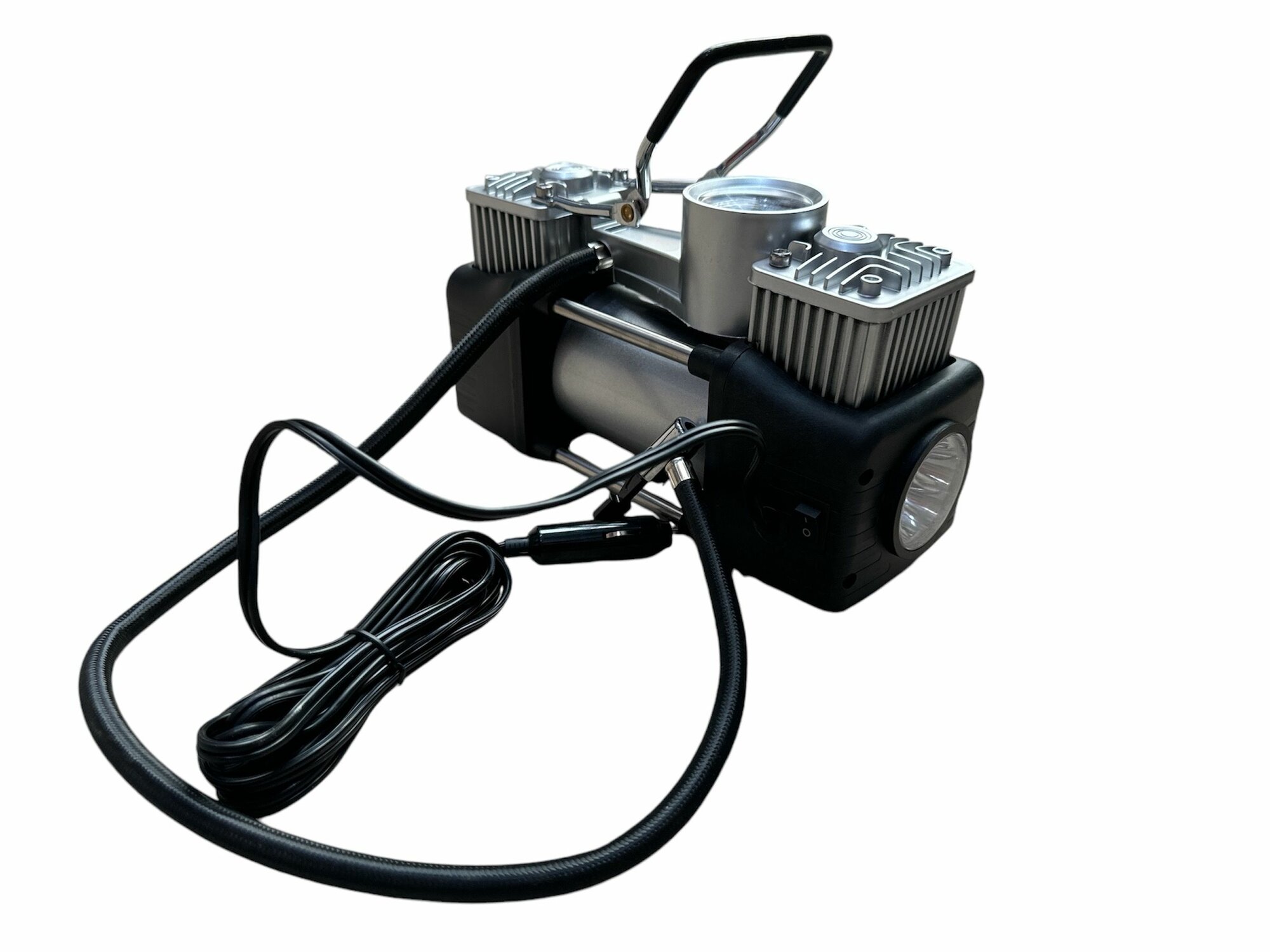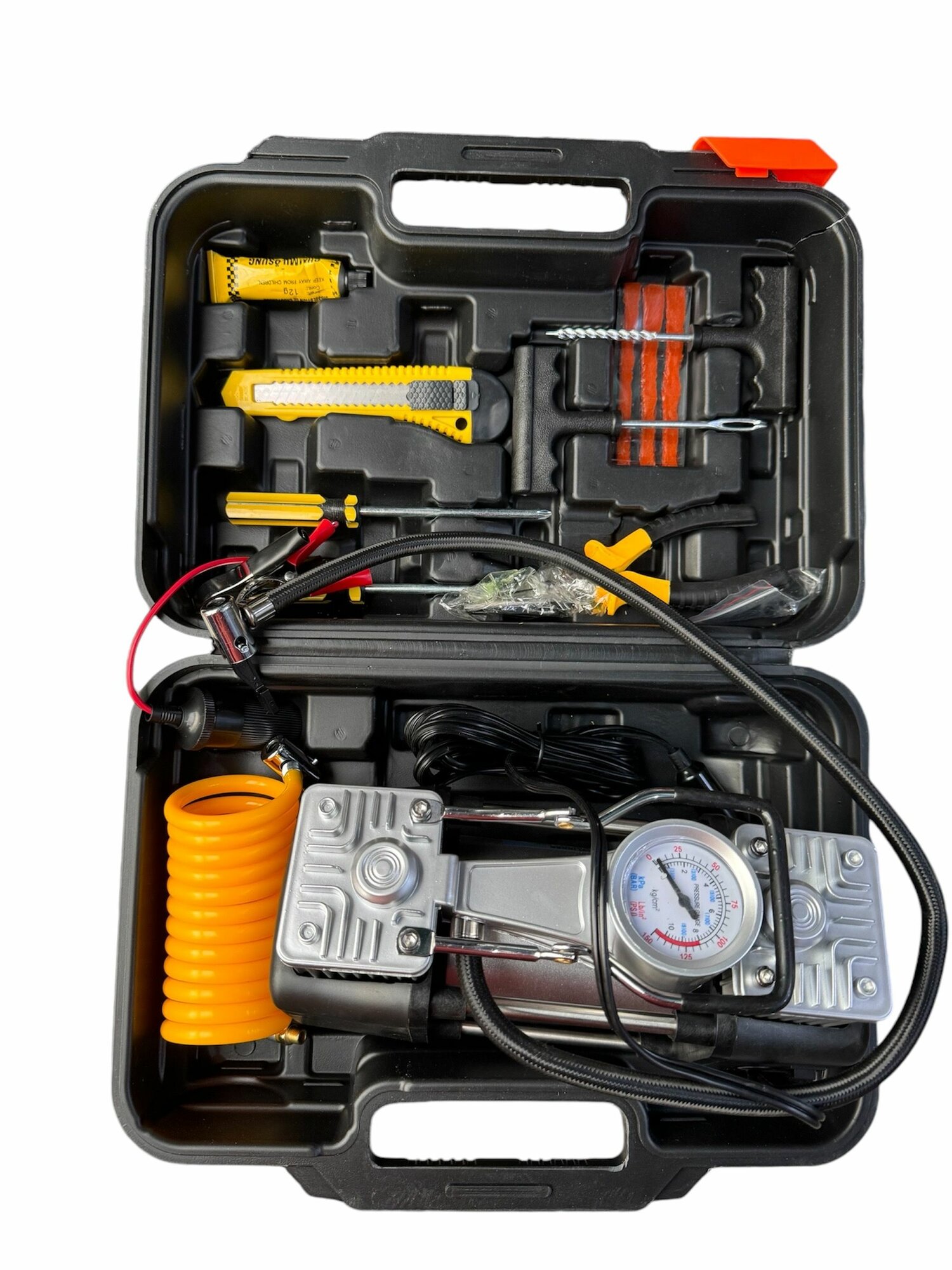 Отзывы на Компрессор автомобильный двухпоршневой, насос автомобильный в кейсе 300 Вт 75л/мин