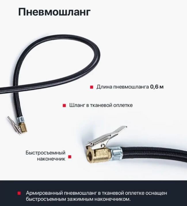 | Подробная комплектация | Коробка упаковочная, транспортировочная -1шт.; Инструкция по эксплуатации -1шт.; Компрессор с кабелем подключения к бортовой сети 3м. - 1шт.; Дополнительные насадки-переходники для накачивания спортивного, туристического инвентаря, велосипедов -3шт.; Рюкзак / сумка для хранения -1шт.; |