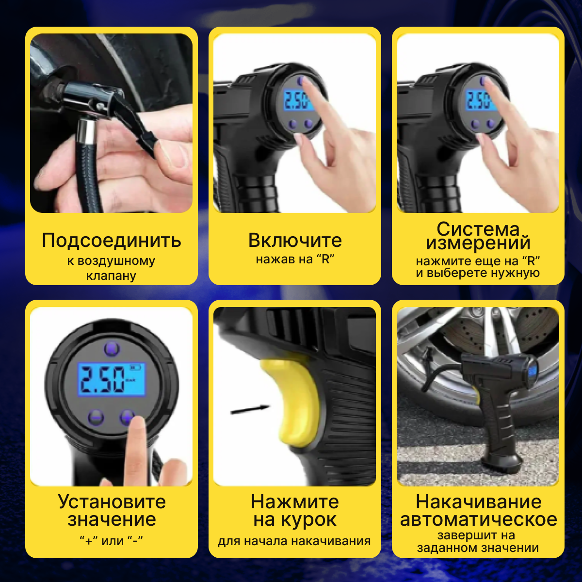 Компрессор автомобильный с аккумулятором и встроенным манометром, беспроводной и универсальный информация: