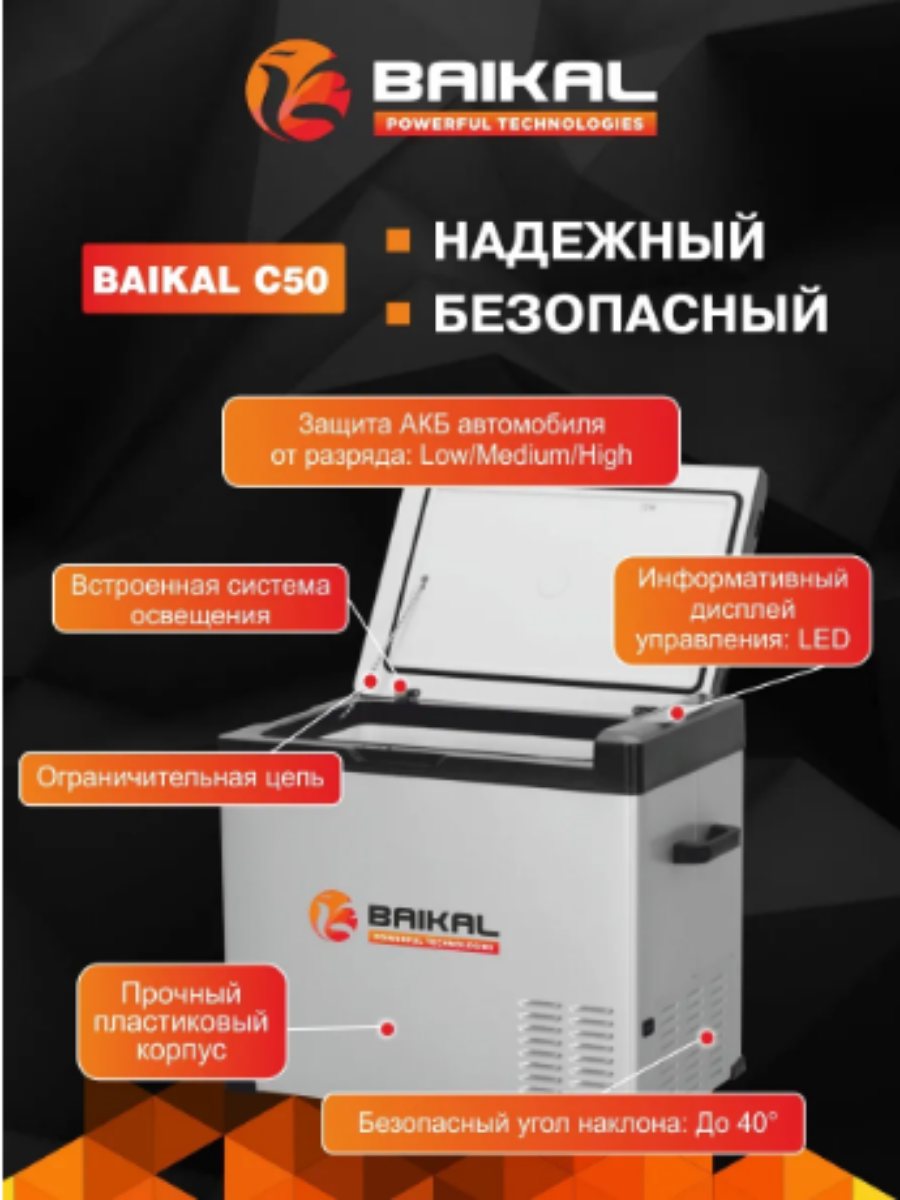 Автохолодильник компрессорный BAIKAL С50 (50 литров, 45 Вт) однокамерный информация: