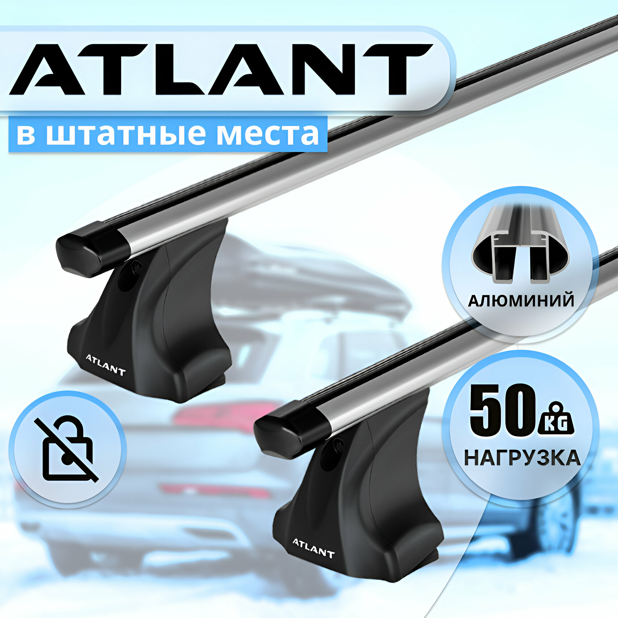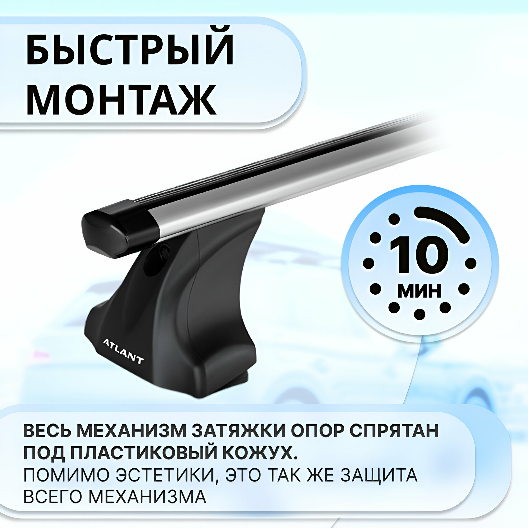 Багажник ATLANT на крышу для BMW X3 5-дв внедорожник 2010-2017 (F25), на интегрированные рейлинги дуги алюминиевые прямоугольные 110 см. + замок