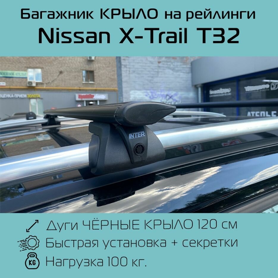 Багажник на рейлинги Titan с усиленными черными крыловидными дугами 120 см для Nissan X-Trail T32 / Ниссан Икс-Трейл Т32 информация: