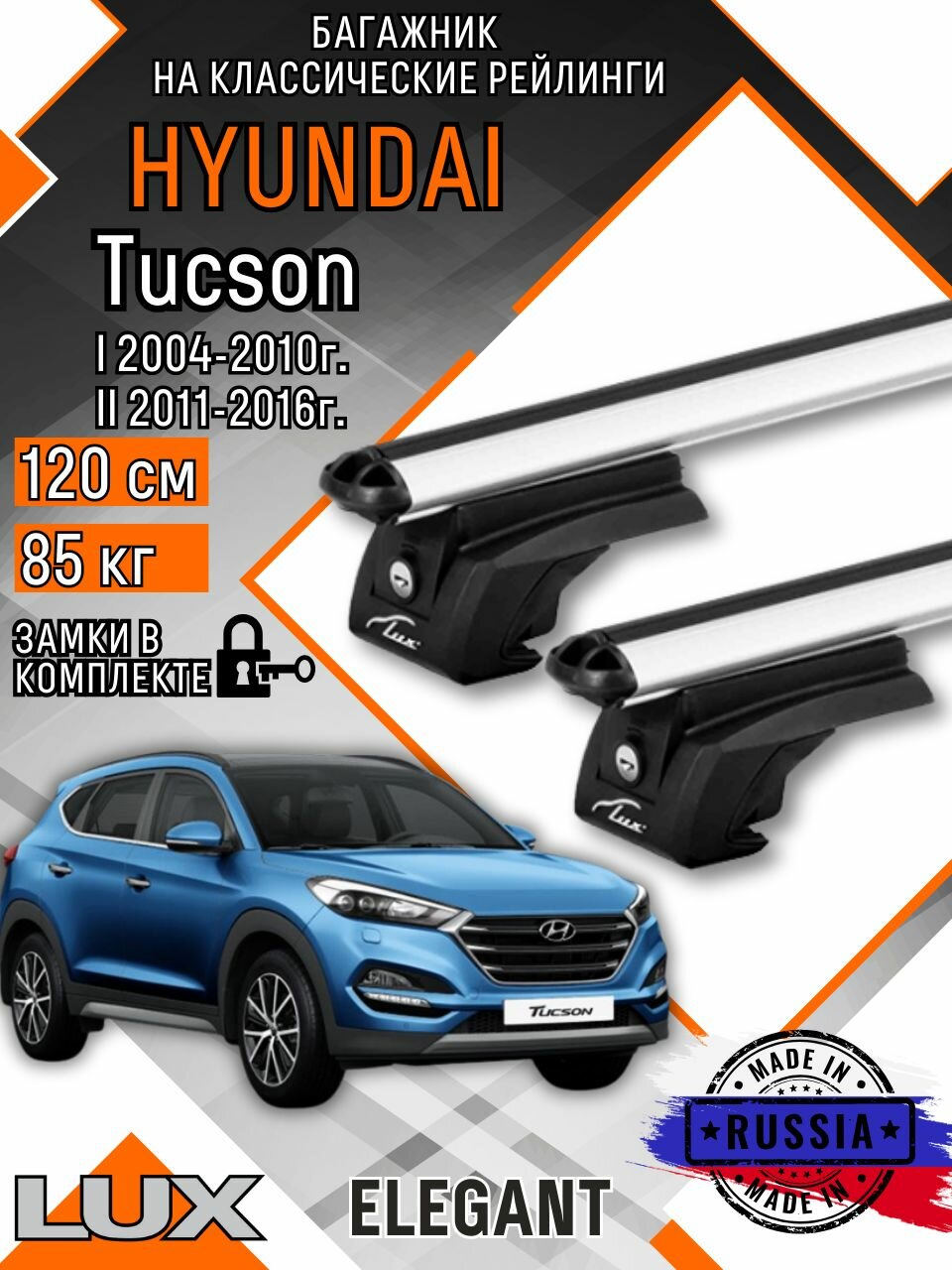 Багажник на крышу авто на рейлинги Hyundai Tucson (Хендэ туксан) с аэро дугими 120см люкс Элегант информация:
