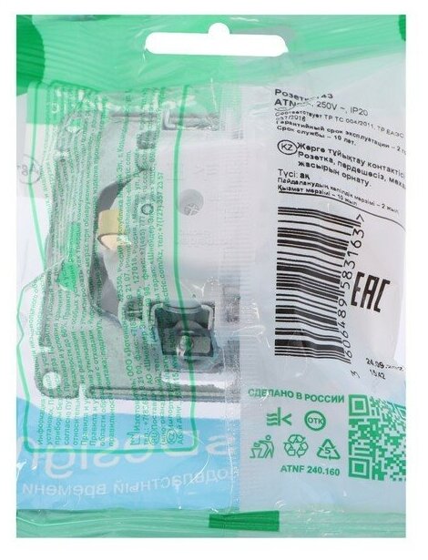 Розетка SE ATLASDESIGN, 16 А, 250 В, встраиваемая, с з/к, IP20, белая, ATN000143 информация: