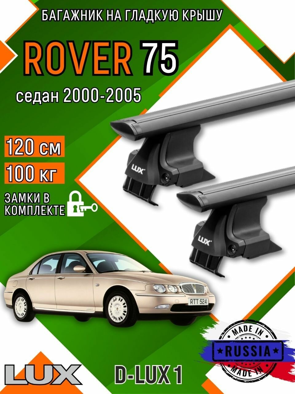 Багажник для автомобиля Rover 75 на гладкую крышу с дугами крыло и замком, черный информация: