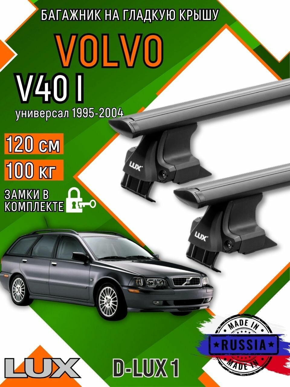Багажник для автомобиля Volvo V40 I на гладкую крышу с дугами крыло и замком, черный информация: