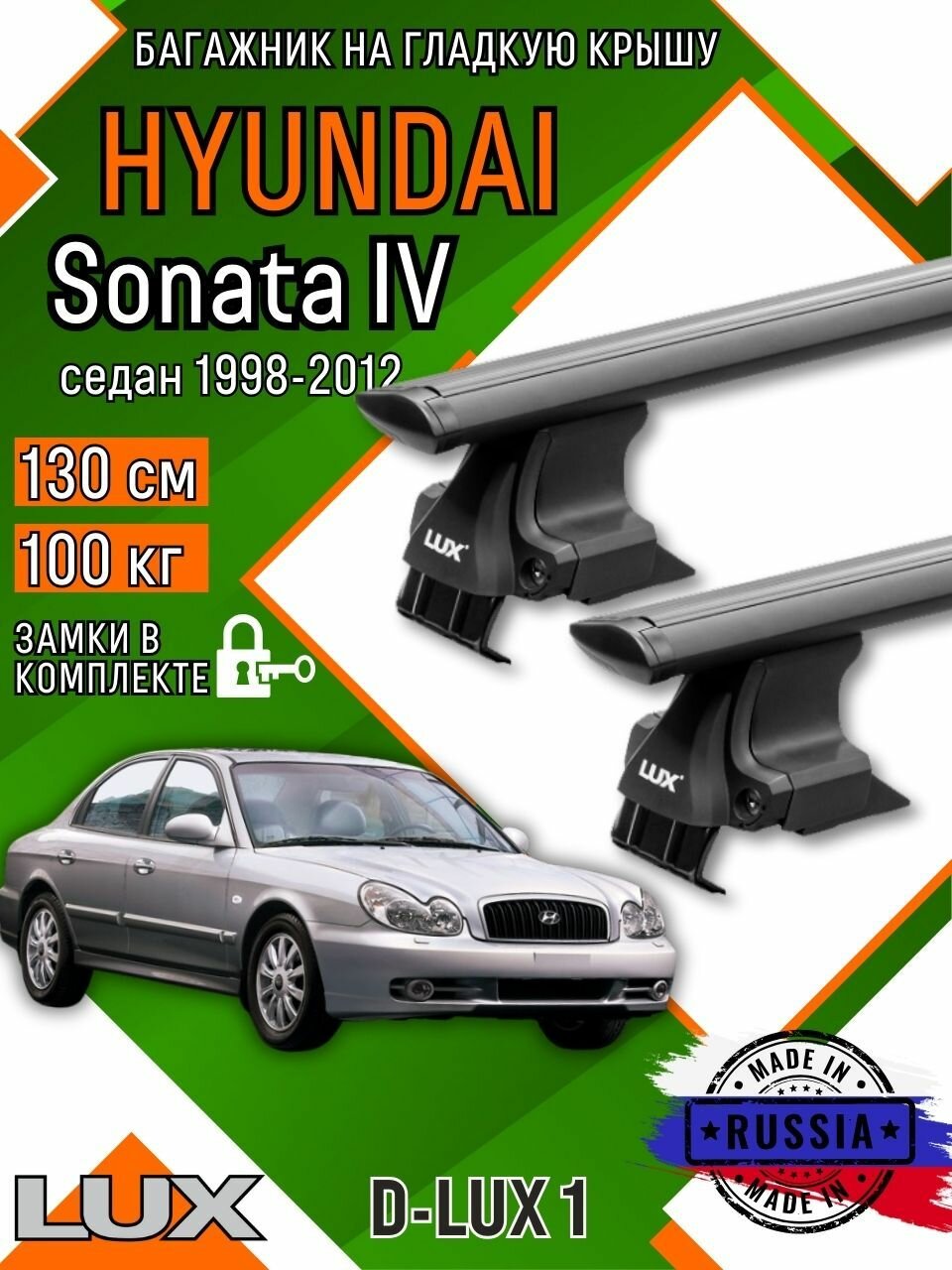 Багажник для автомобиля Hyundai Sonata (тагаз) на гладкую крышу с дугами крыло и замком, черный информация: