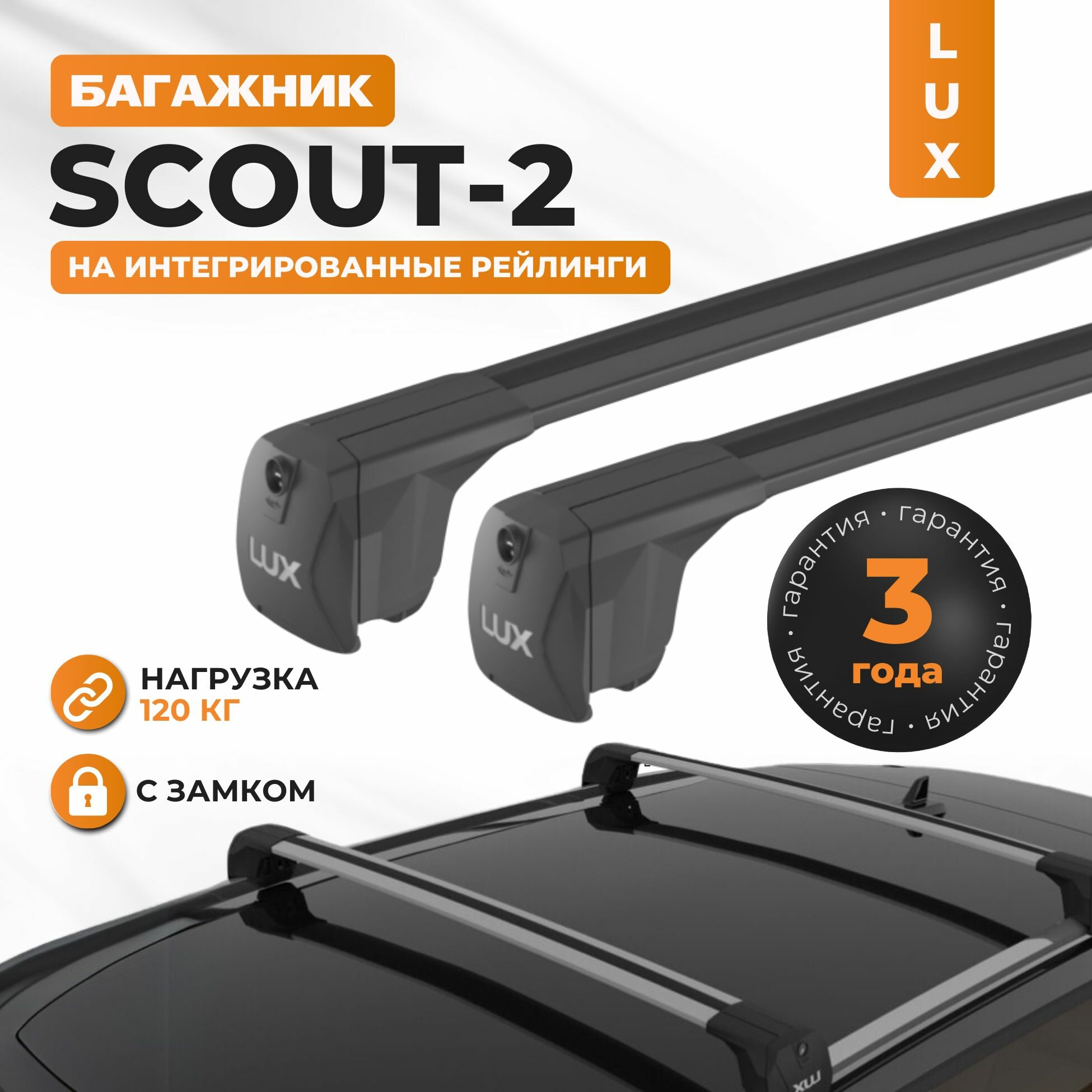 Багажник на крышу Lux SCOUT-2 для Hyundai ix35 (Хендай IX35) 2010-2015, на интегрированные рейлинги, черный информация: