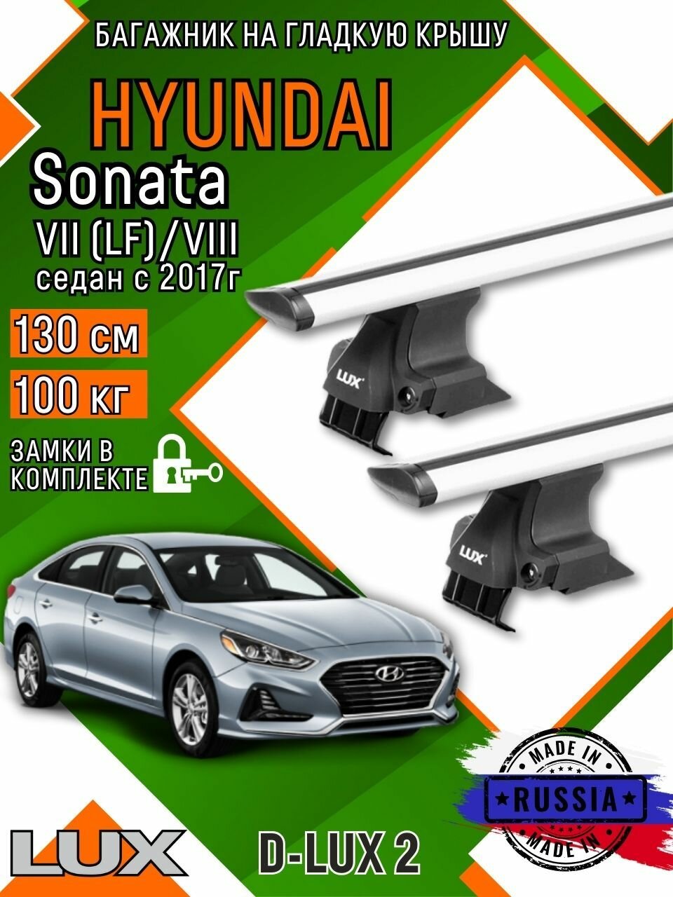 Багажник для автомобиля Hyundai Sonata VII (LF), VIII на гладкую крышу с дугами крыло и замком информация: