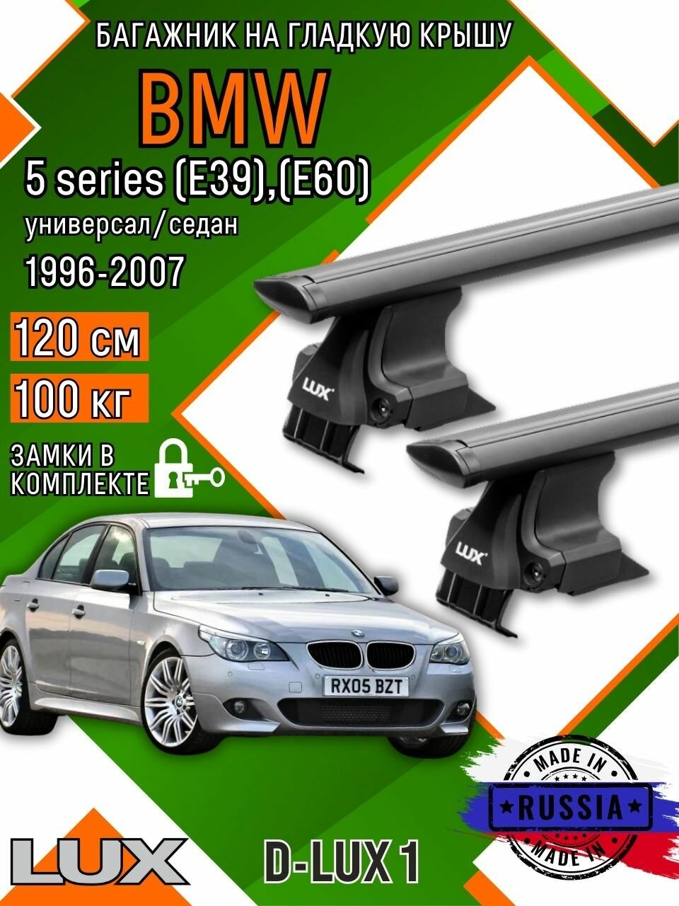 Отзывы на Багажник для автомобиля BMW 5 series (E39),(E60),(E60) на гладкую крышу с дугами крыло и замком, черный