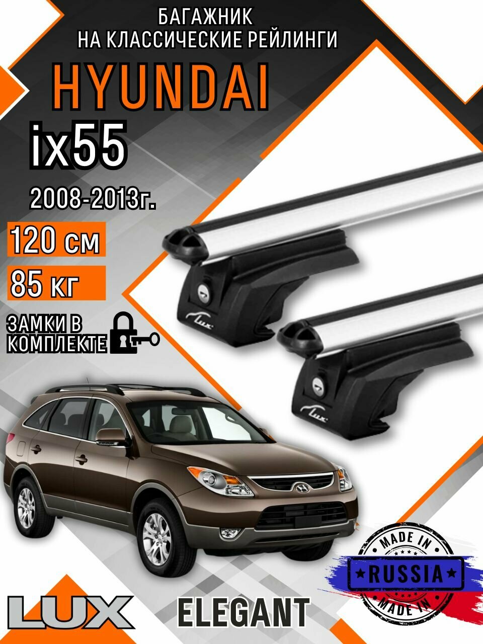 Багажник на крышу авто на рейлинги Hyundai ix55 (Хендэ ix55) с аэро дугими 120см люкс Элегант информация: