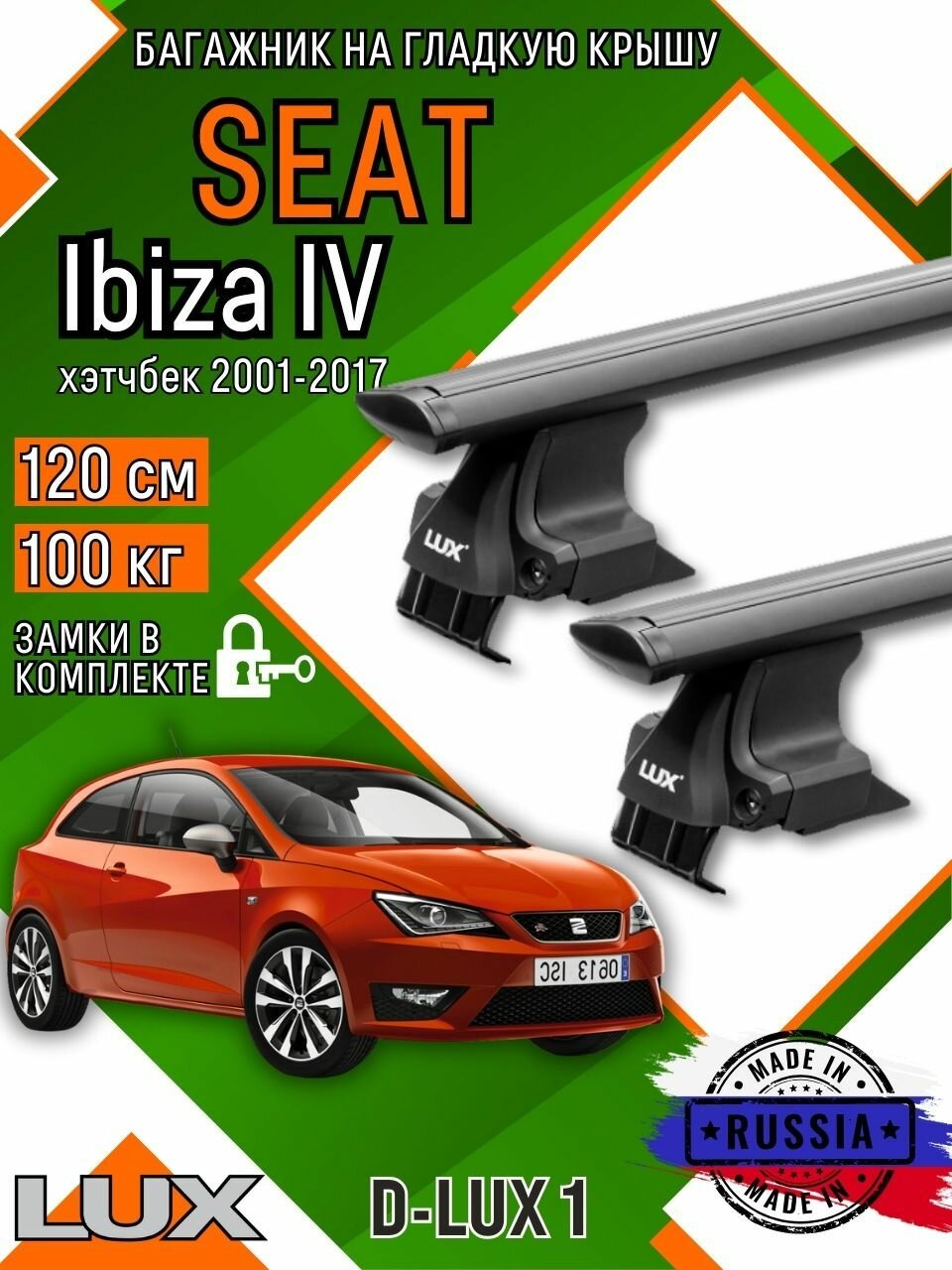 Багажник для автомобиля SEAT Ibiza на гладкую крышу с дугами крыло и замком, черный информация:
