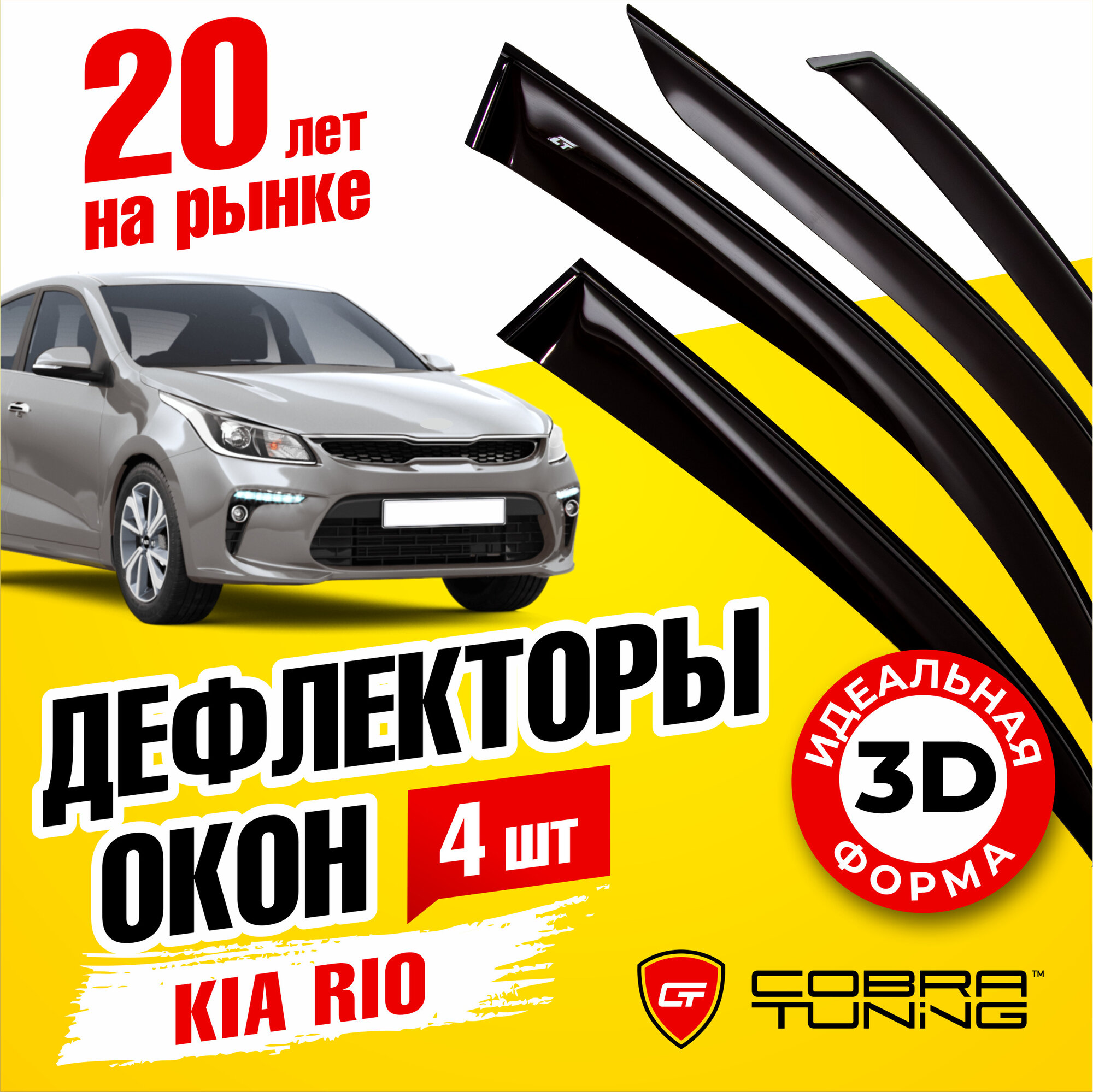10 цен на Дефлекторы боковых окон для Kia Rio IV (Киа Рио 4) седан 2017-2022, ветровики на двери автомобиля, Cobra Tuning