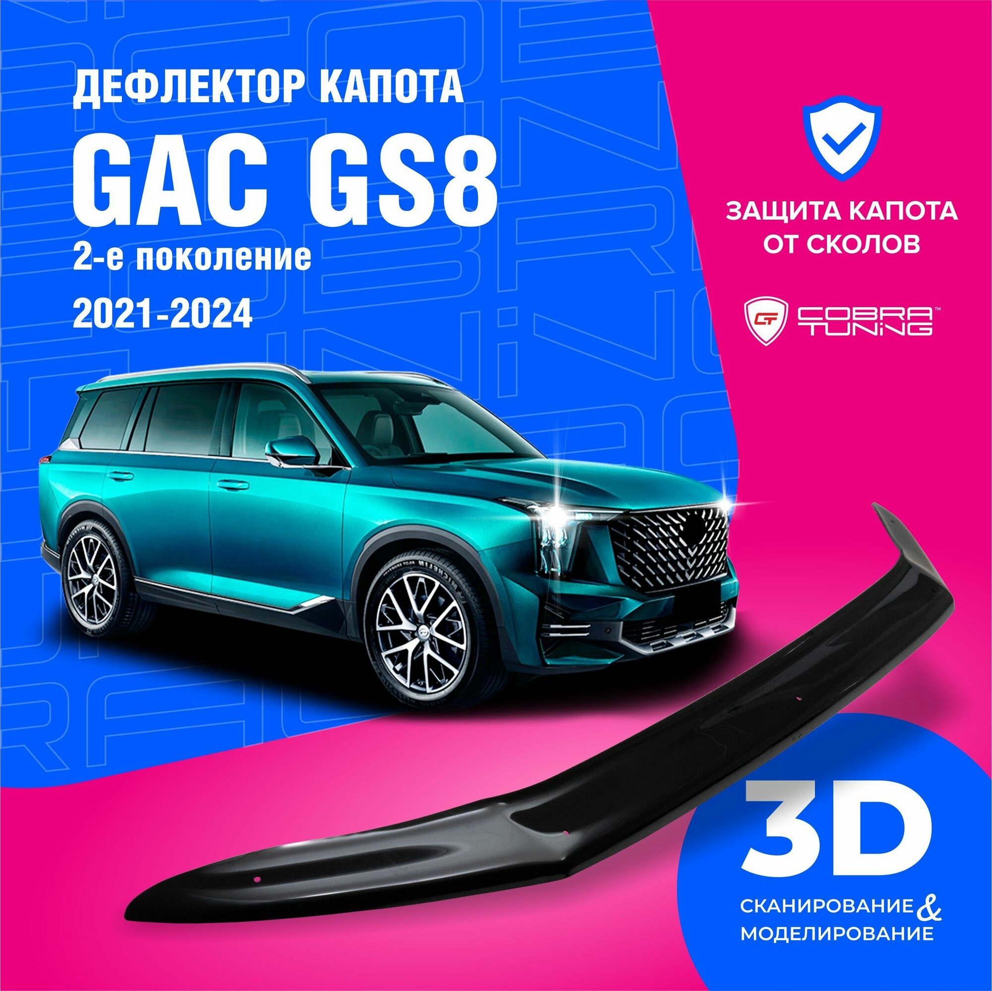 Дефлектор капота для автомобиля GAC GS8 (ГАК ГС8) 2-е поколение 2021-2024, мухобойка, защита от сколов, Cobra Tuning информация: