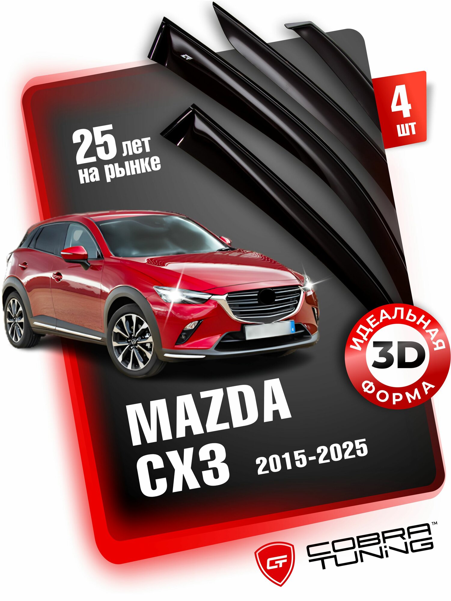 Дефлекторы боковых окон для Mazda CX3 2015-2025 (Мазда СХ3), ветровики на двери автомобиля, Cobra Tuning. информация: