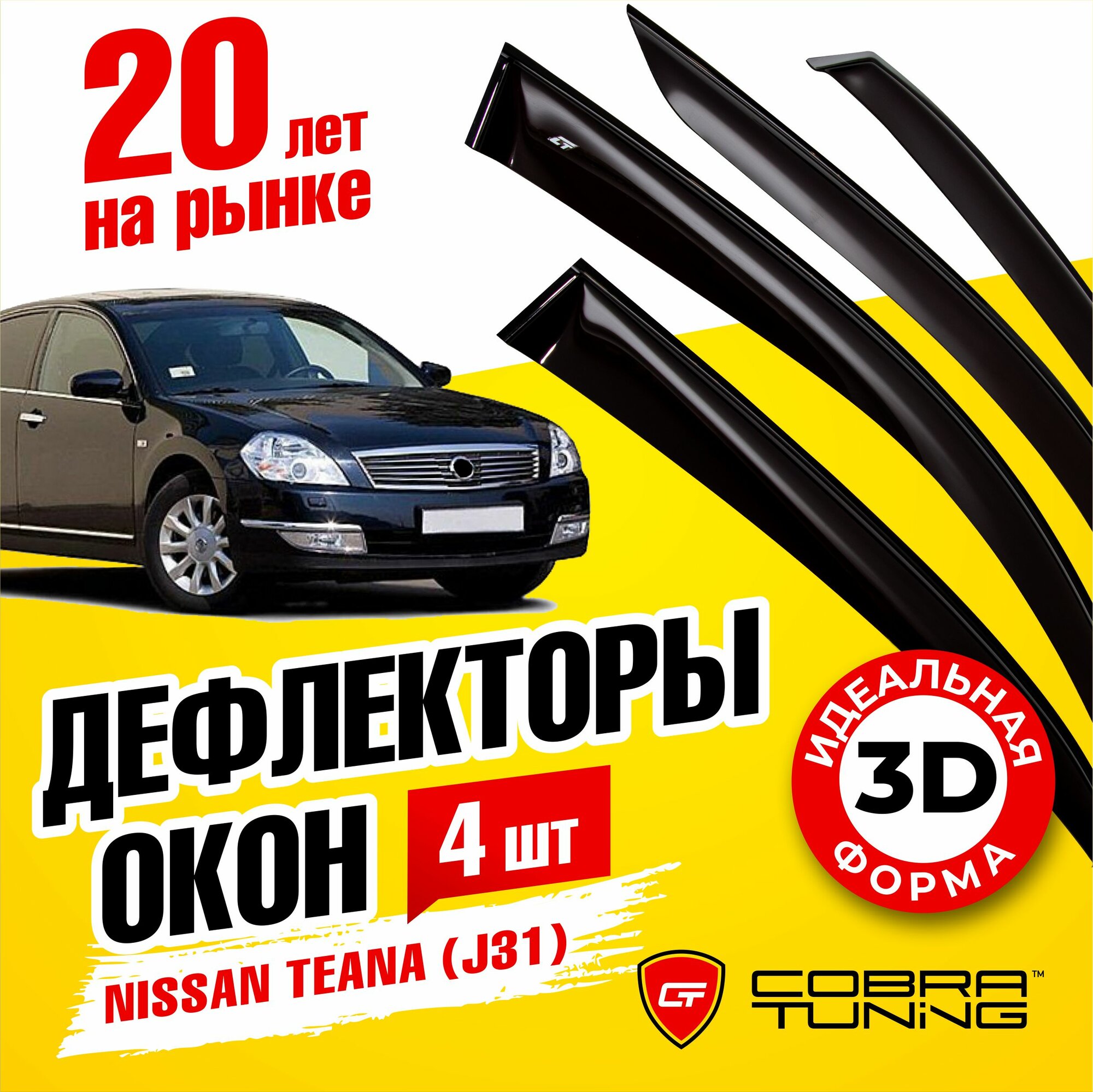 Дефлекторы боковых окон для Nissan Teana (Ниссан Тиана) (J31) 2003-2008, ветровики на двери автомобиля, Cobra Tuning информация: