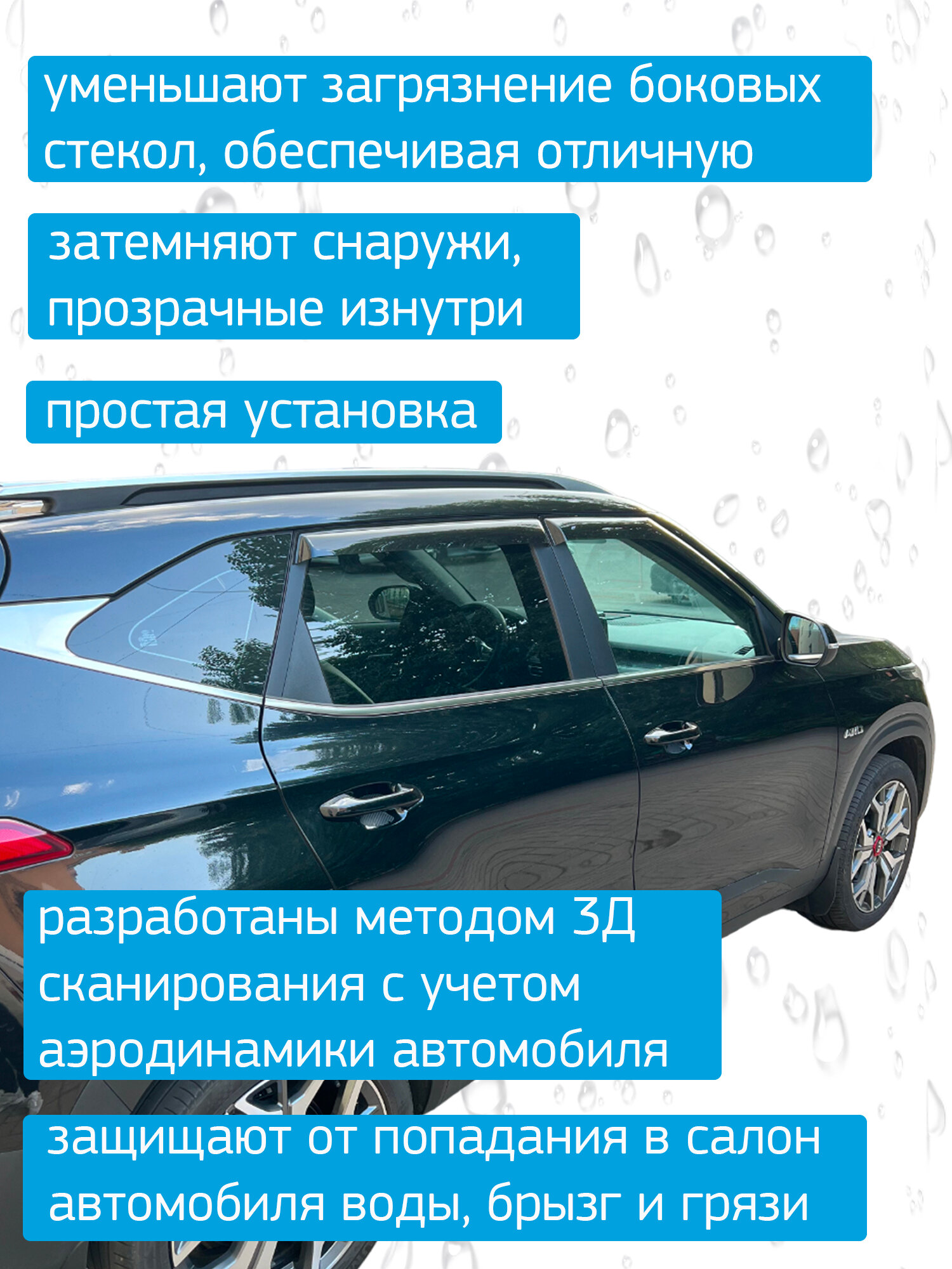 Дефлекторы боковых окон для Haval Jolion (Хавал Джолион) 2021, 2022, 2023, 2024, 2025 полный комплект с уголками, 6 частей, ветровики Cobra Tuning