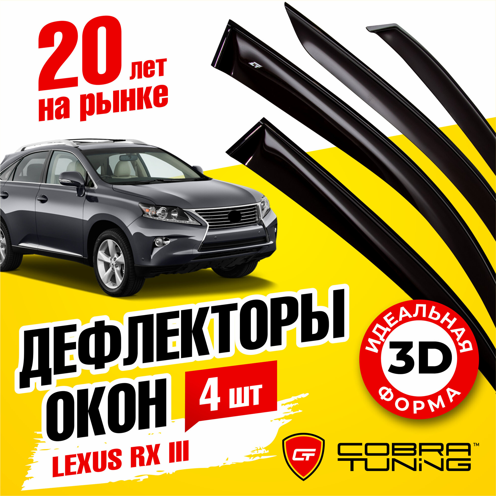 Дефлекторы боковых окон для Lexus RХ 3 (Лексус) 2010-2015, ветровики на двери автомобиля, Cobra Tuning информация: