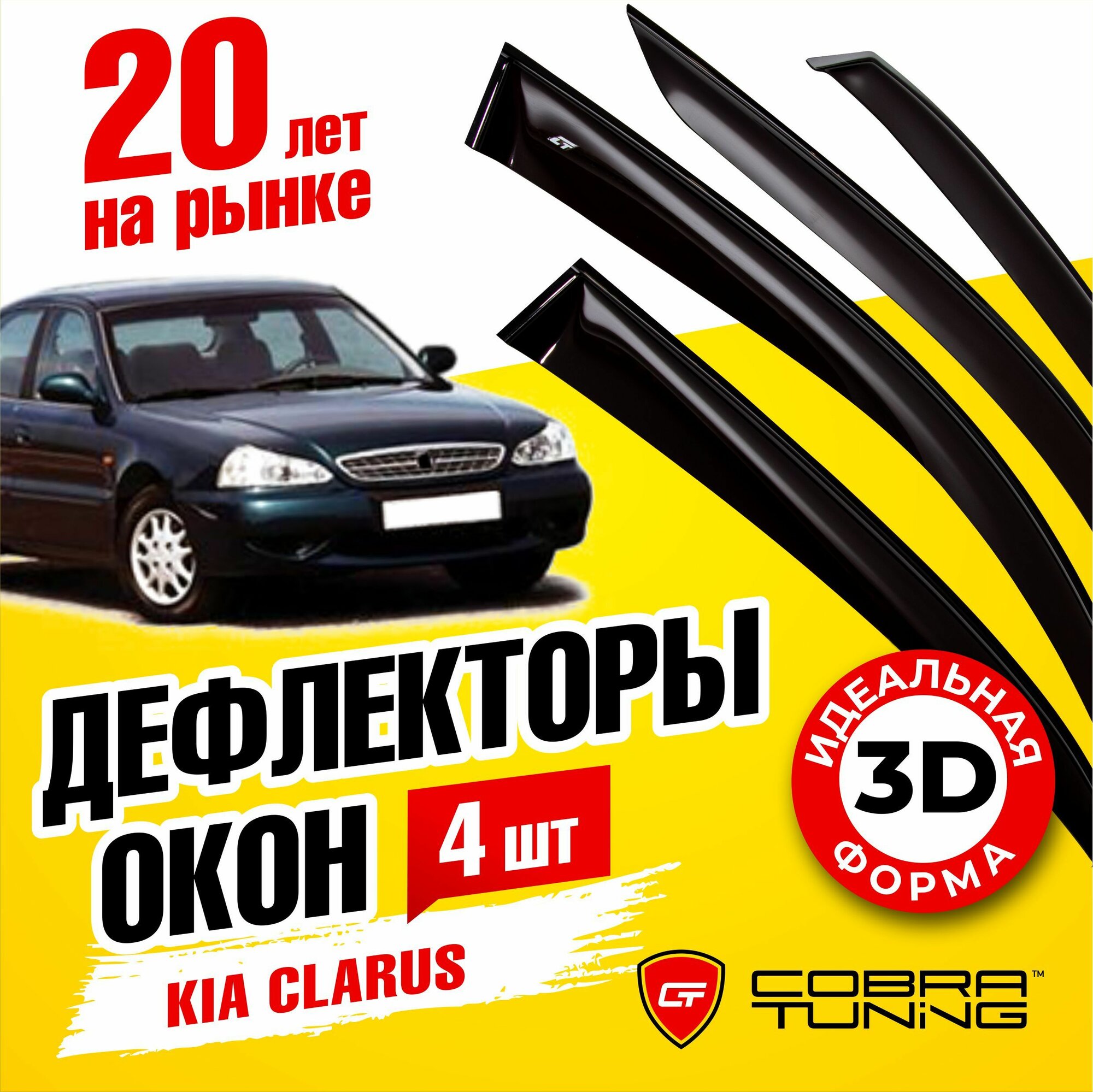 10 цен на Дефлекторы боковых окон для Kia Clarus (Киа Кларус) седан 1998-2001, ветровики на двери автомобиля, Cobra Tuning