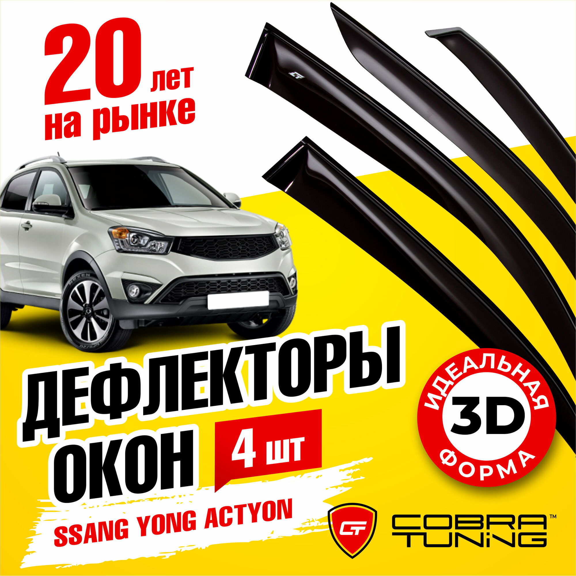 10 цен на Дефлекторы боковых окон для Ssang Yong Actyon (Санг Йонг Актион) 2010-2022, ветровики на двери автомобиля, Cobra Tuning