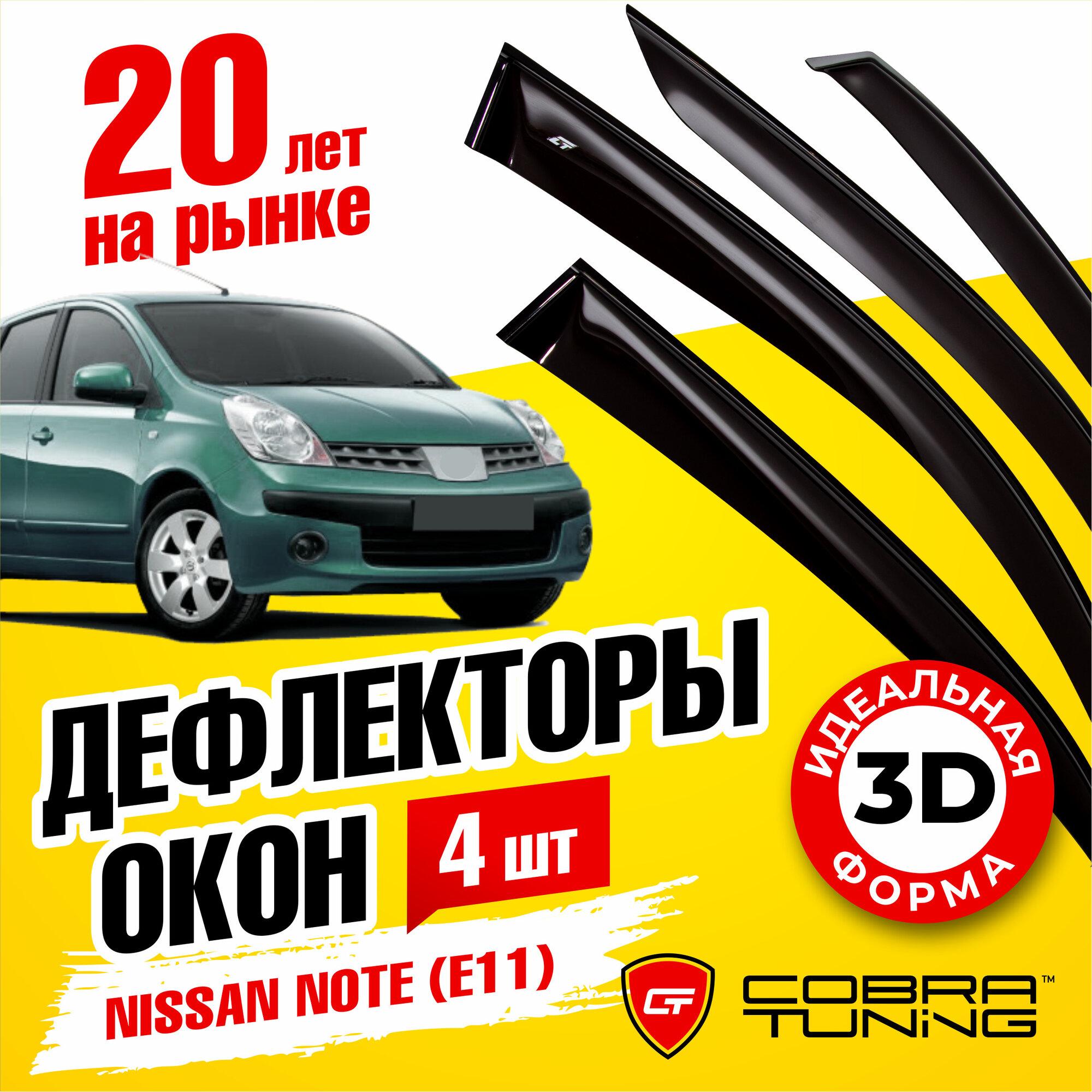 10 цен на Дефлекторы боковых окон для Nissan Note (Ниссан Ноут) (E11) 2005-2013, ветровики на двери автомобиля, Cobra Tuning
