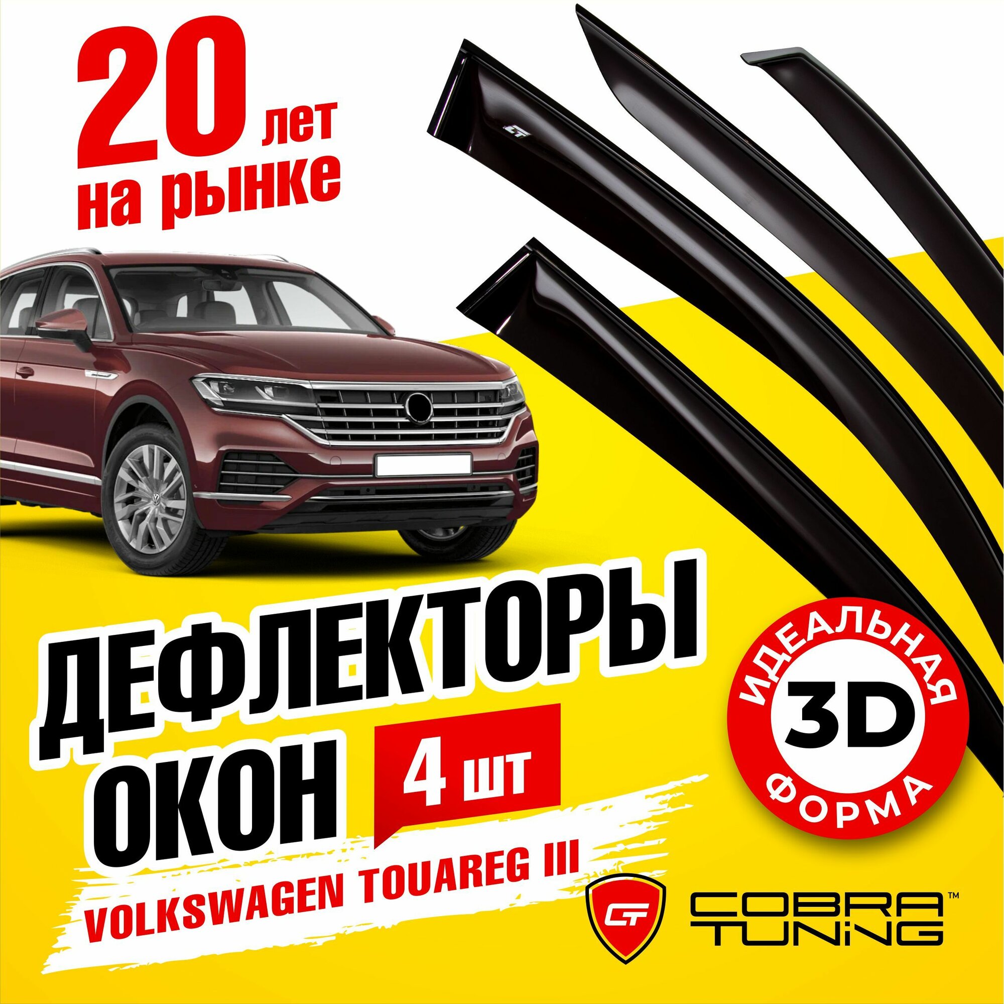 Отзывы на Дефлекторы боковых окон для Volkswagen Touareg 3 (Фольксваген Туарег) 2018-2022, ветровики на двери автомобиля, Cobra Tuning