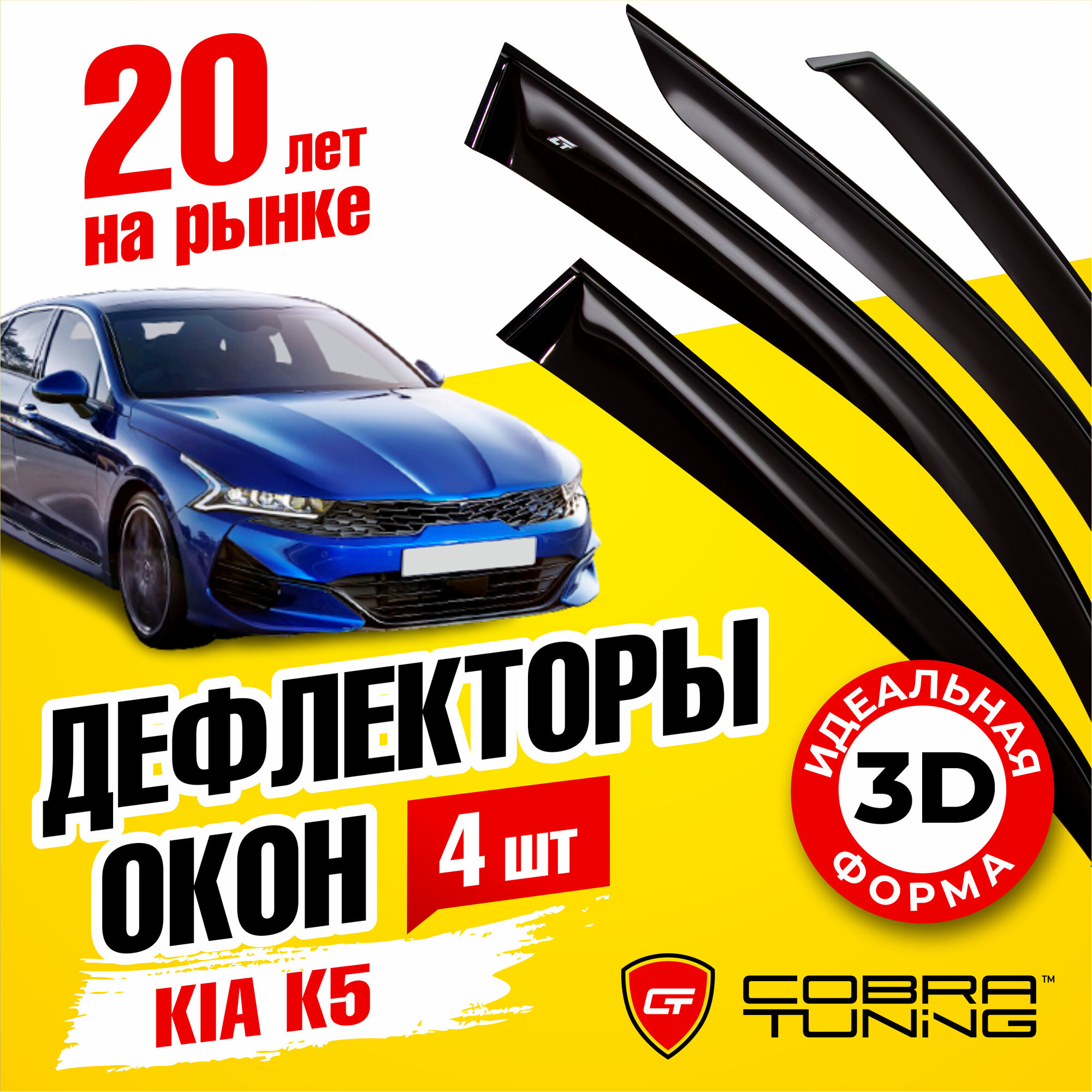 Отзывы на Дефлекторы боковых окон для Kia K5 (Киа К5) седан 2020-2024, ветровики на двери автомобиля, Cobra Tuning
