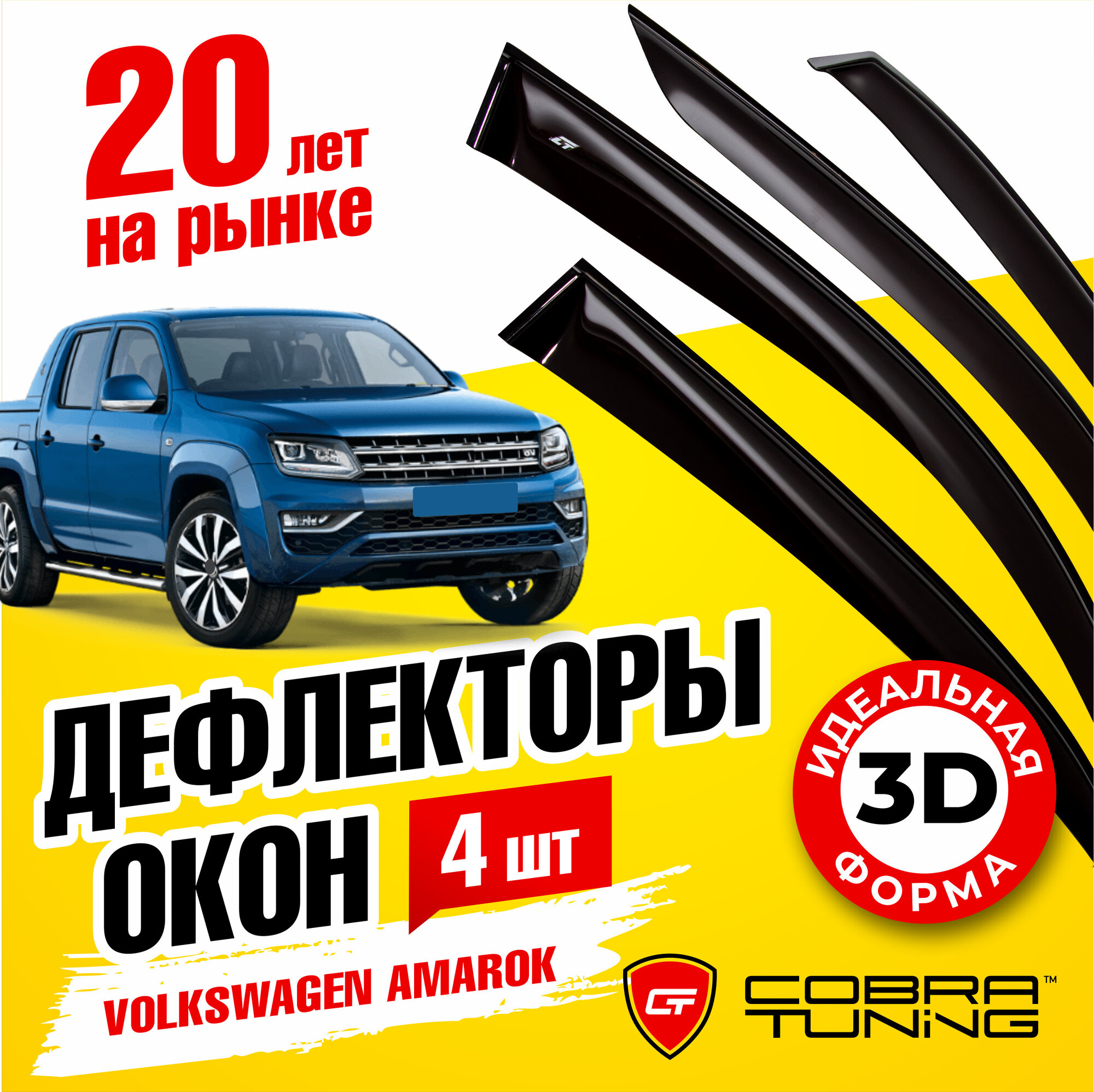 10 цен на Дефлекторы боковых окон для Volkswagen Amarok (Фольксваген Амарок) 2009-2022, ветровики на двери автомобиля, Cobra Tuning