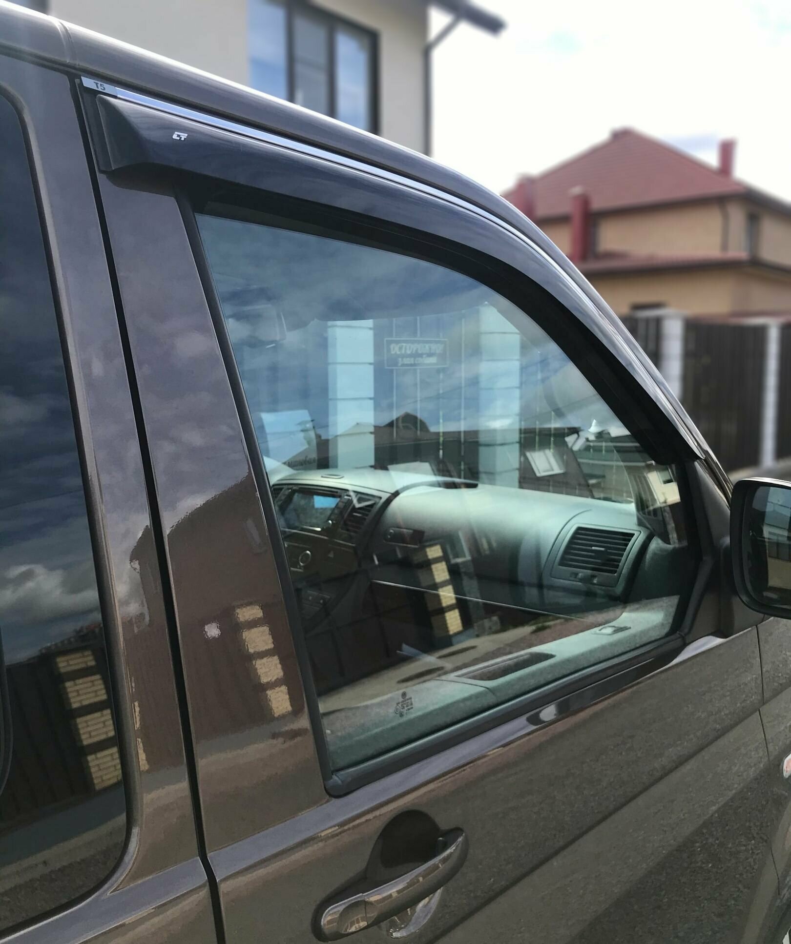 Отзывы на Дефлекторы боковых окон для Volkswagen Т5, T6 - Транспортер, Мультиван, Каравелла (Фольксваген) 2003-2022, ветровики с хром молдингом, Cobra Tuning