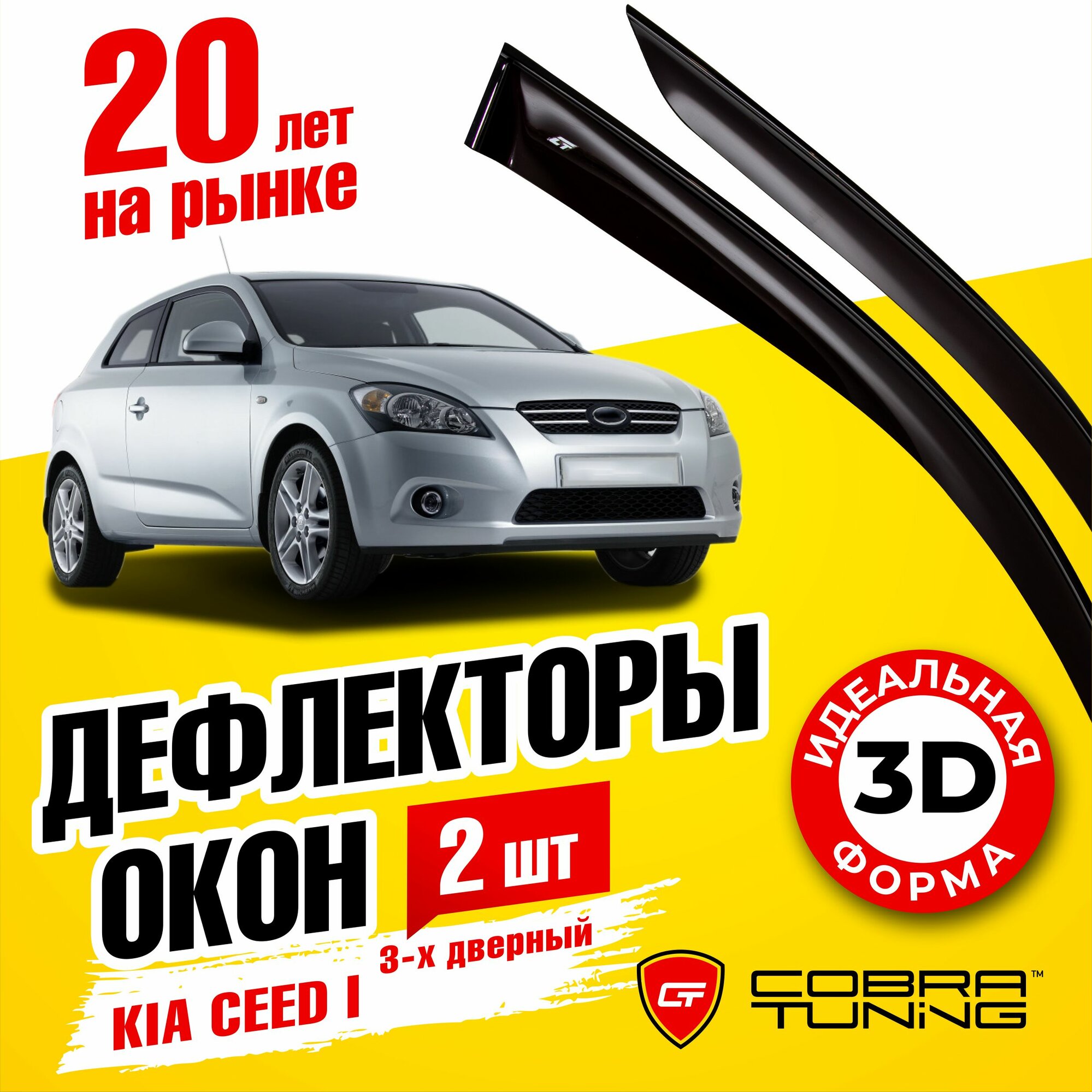 Отзывы на Дефлекторы боковых окон для Kia Ceed I (Киа Сид 1) хэтчбек 3-ёх дверный 2007-2012, ветровики на двери автомобиля, Cobra Tuning