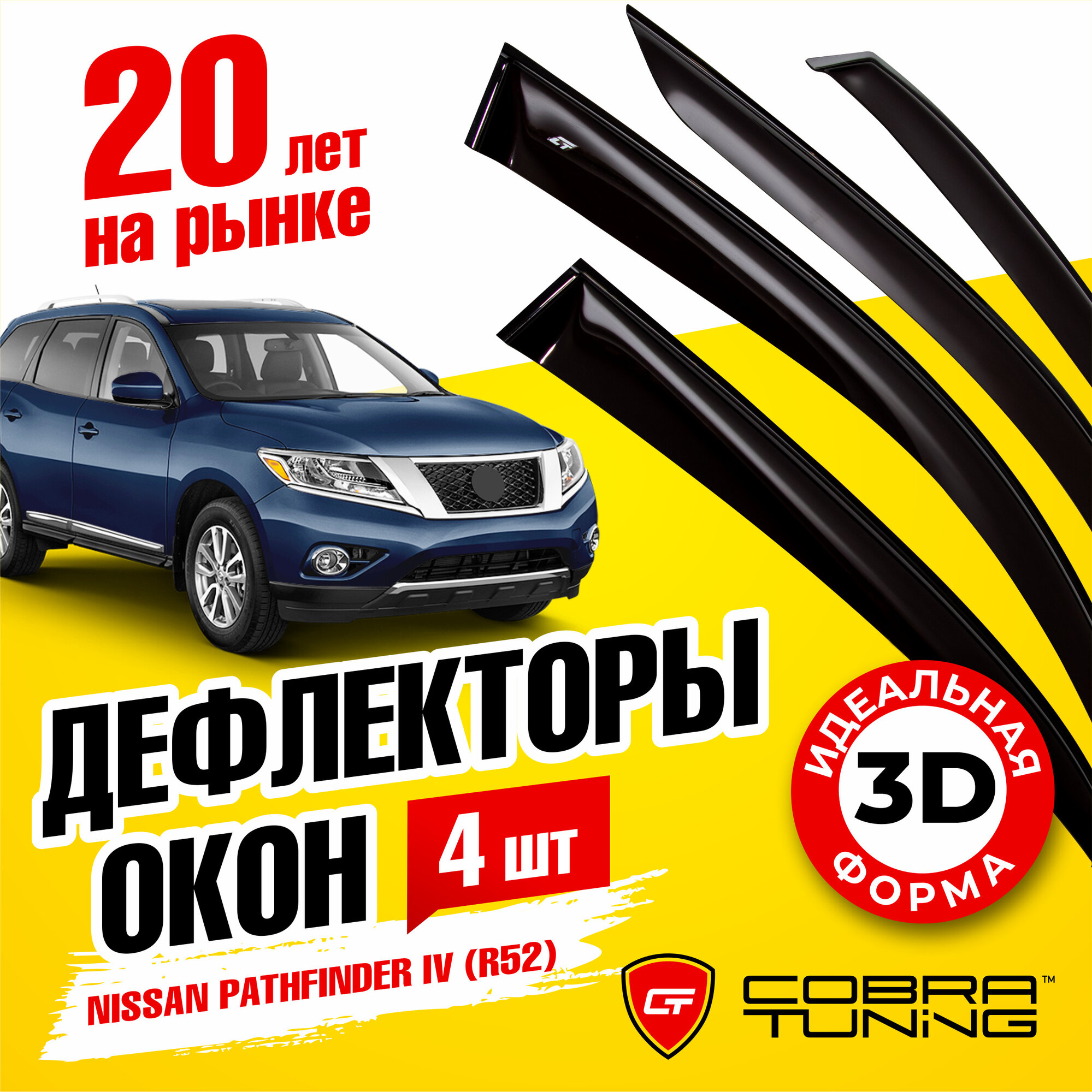 Отзывы на Дефлекторы боковых окон для Nissan Pathfinder 4 (Ниссан Патфайндер) R52 2014-2021, ветровики на двери автомобиля, Cobra Tuning