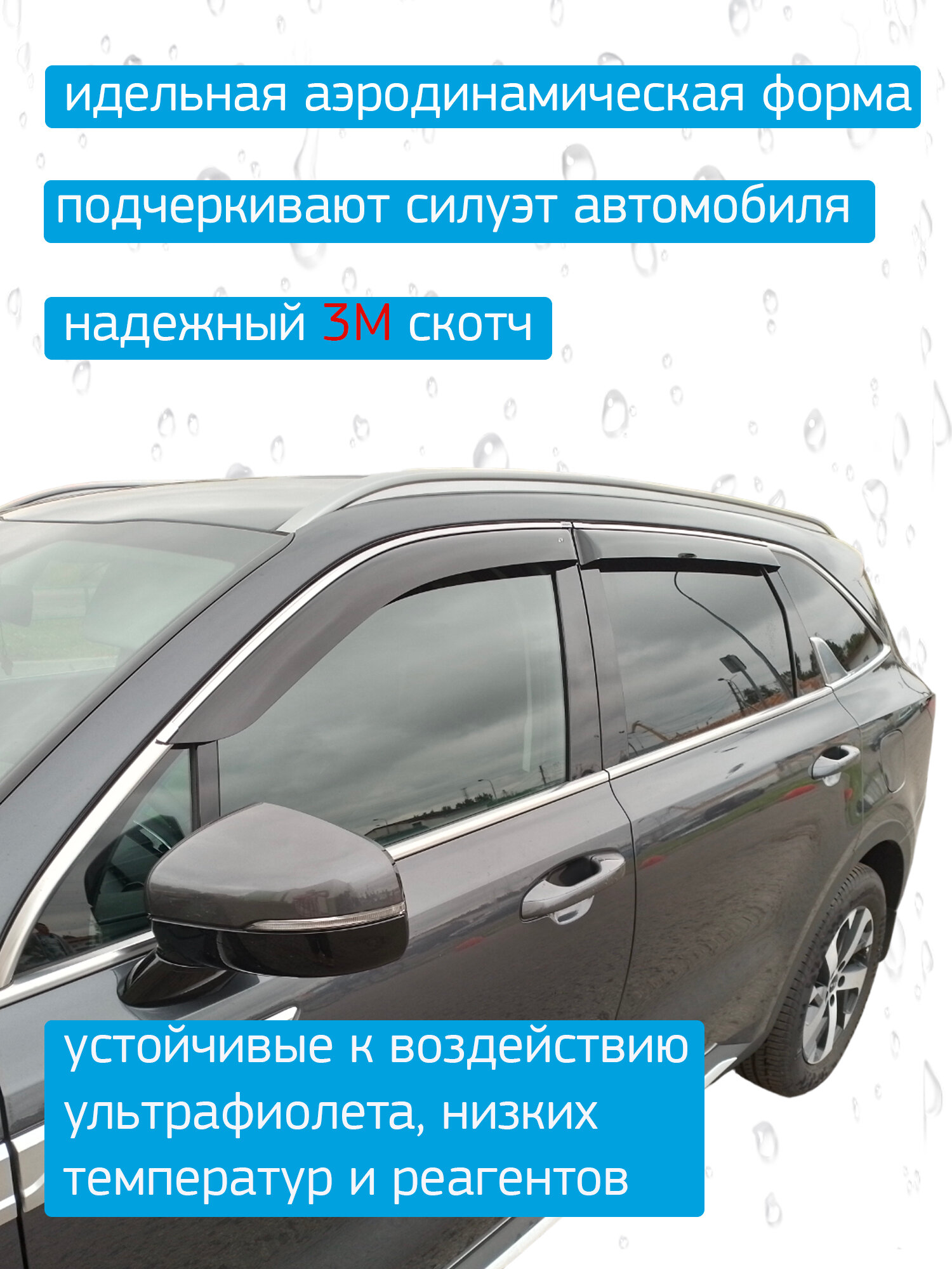 Отзывы на Ветровики с хромом (дефлекторы окон) для Kia Sorento 4 2020-н. в