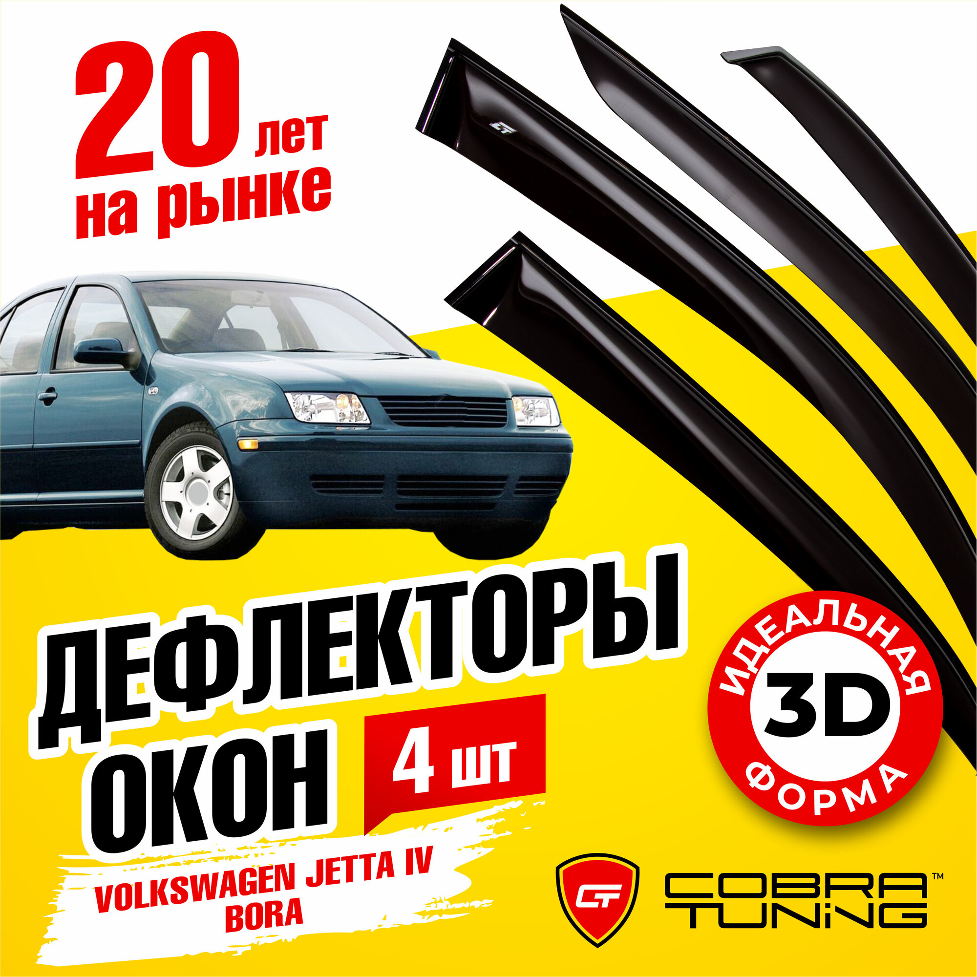 10 цен на Дефлекторы боковых окон для Volkswagen Jetta 4 (Фольксваген Джетта), Bora (Бора), 1999-2005, ветровики на двери автомобиля, Cobra Tuning