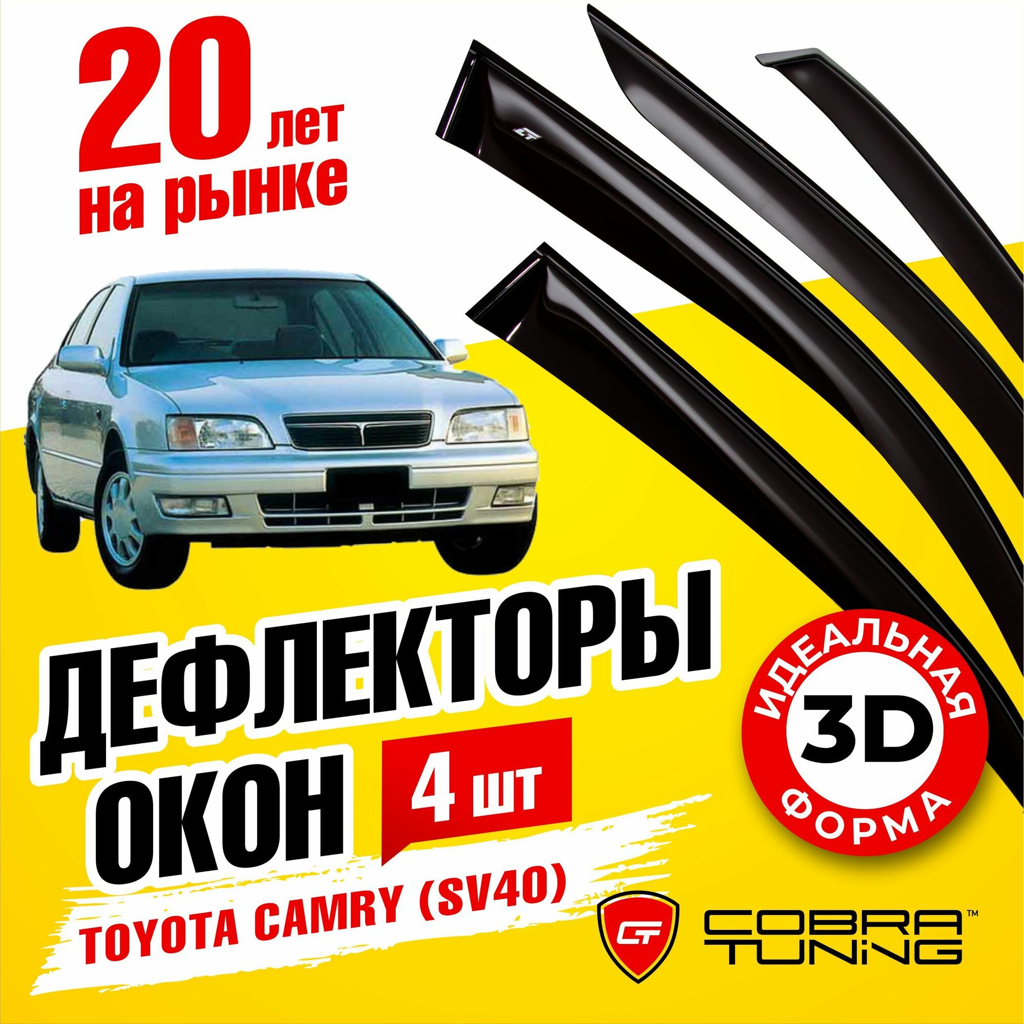 10 цен на Дефлекторы боковых окон для Toyota Camry (Тойота Камри) седан 1994-1998, ветровики на двери автомобиля, Cobra Tuning