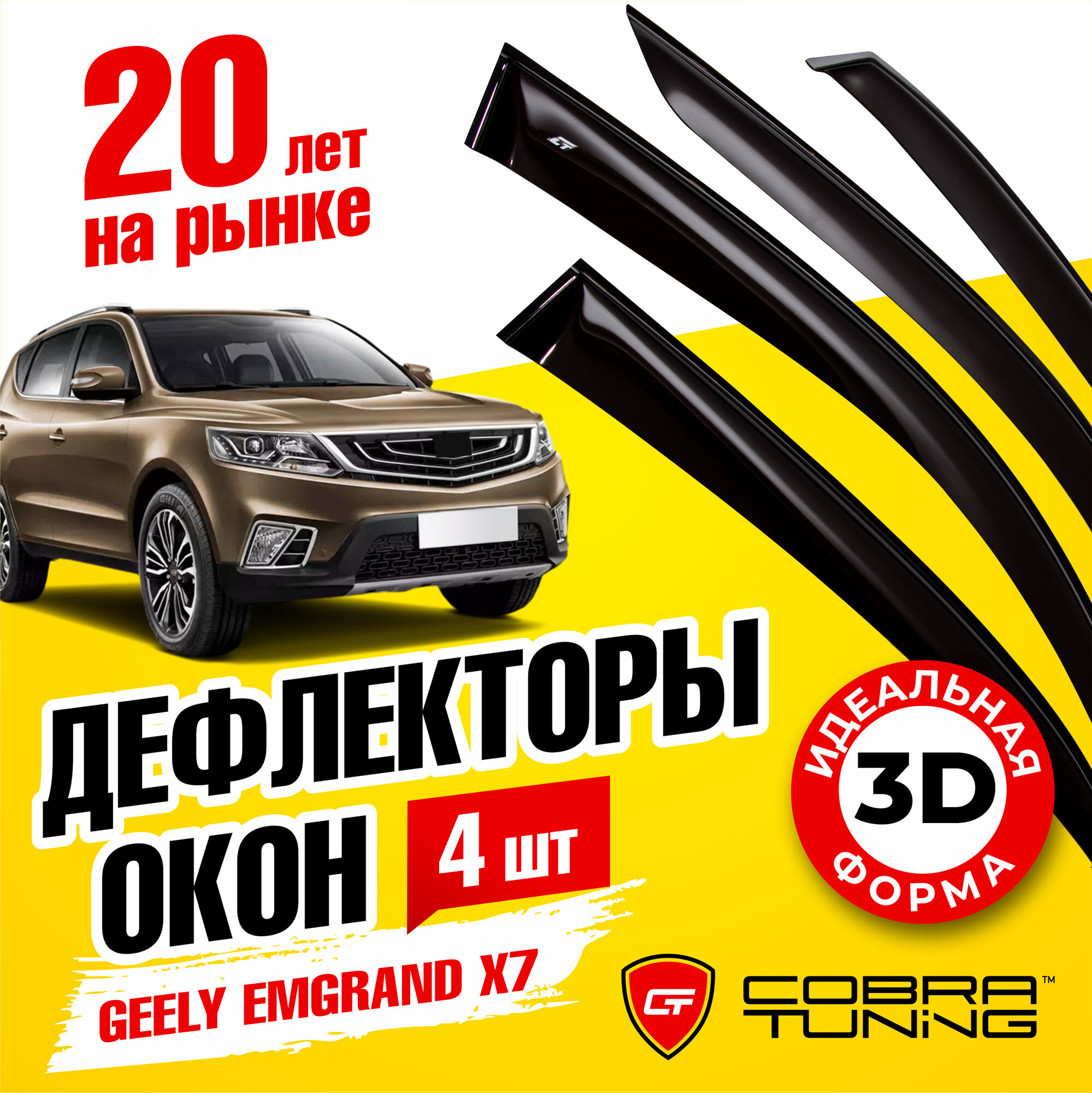 10 цен на Дефлекторы боковых окон для Geely Emgrand X7 (Джили Эмгранд) 2013-2022, ветровики на двери автомобиля, Cobra Tuning