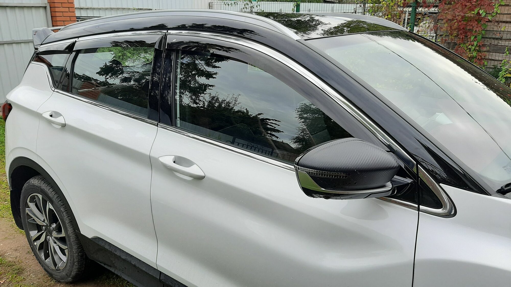 Отзывы на Дефлекторы боковых окон для Geely Coolray (Джили Кулрей) 2020-2024, Belgee X50 (Белджи X50) 2023, ветровики с хром молдингом, полный комплект с уголками, 6 частей, Cobra Tuning