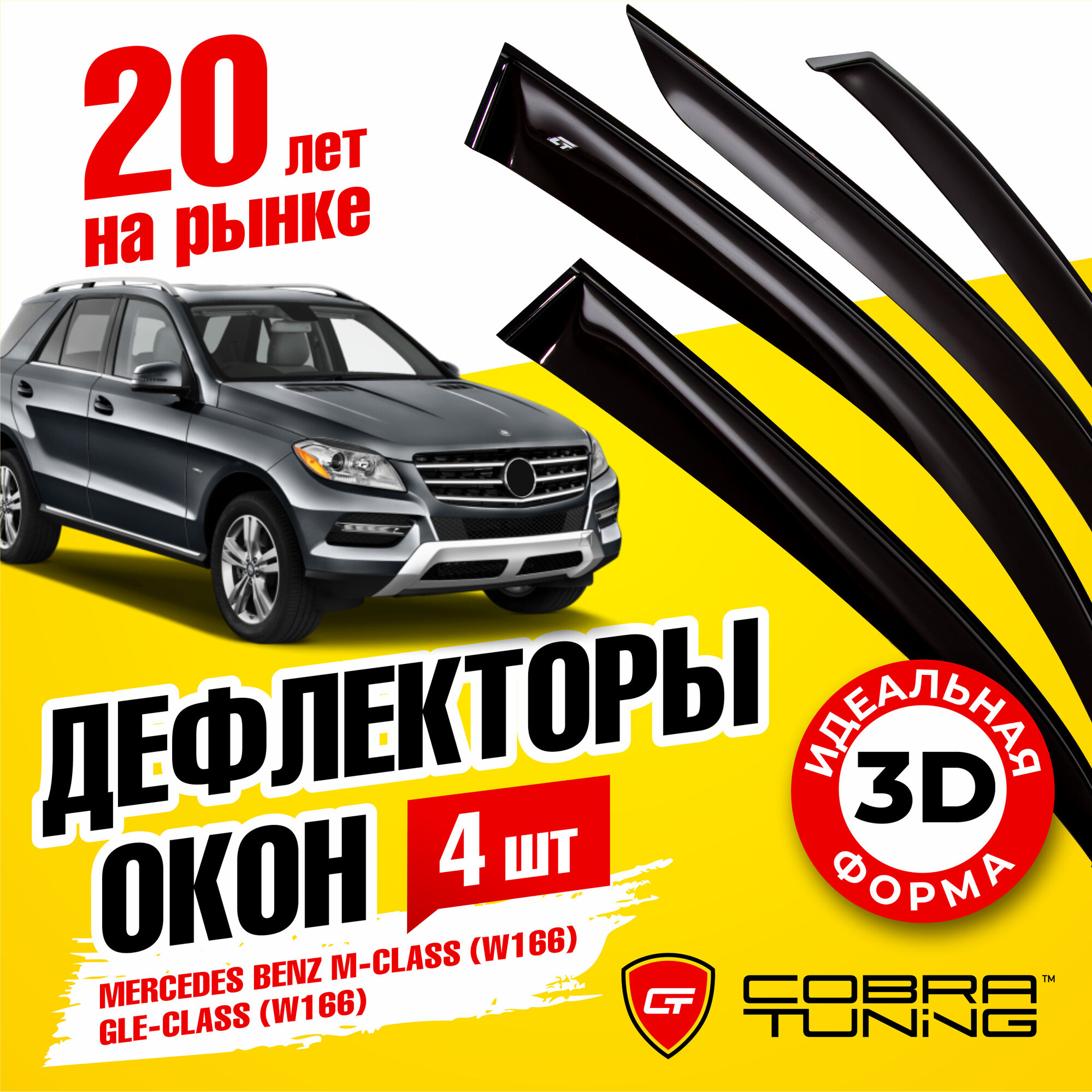 10 цен на Дефлекторы боковых окон для Mercedes Benz M-class (Мерседес Бенц М-класс) (W166) 2011-2015, GLE-class (ГЛЕ-класс) (W166) 2015-2018, ветровики на двери автомобиля, Cobra Tuning