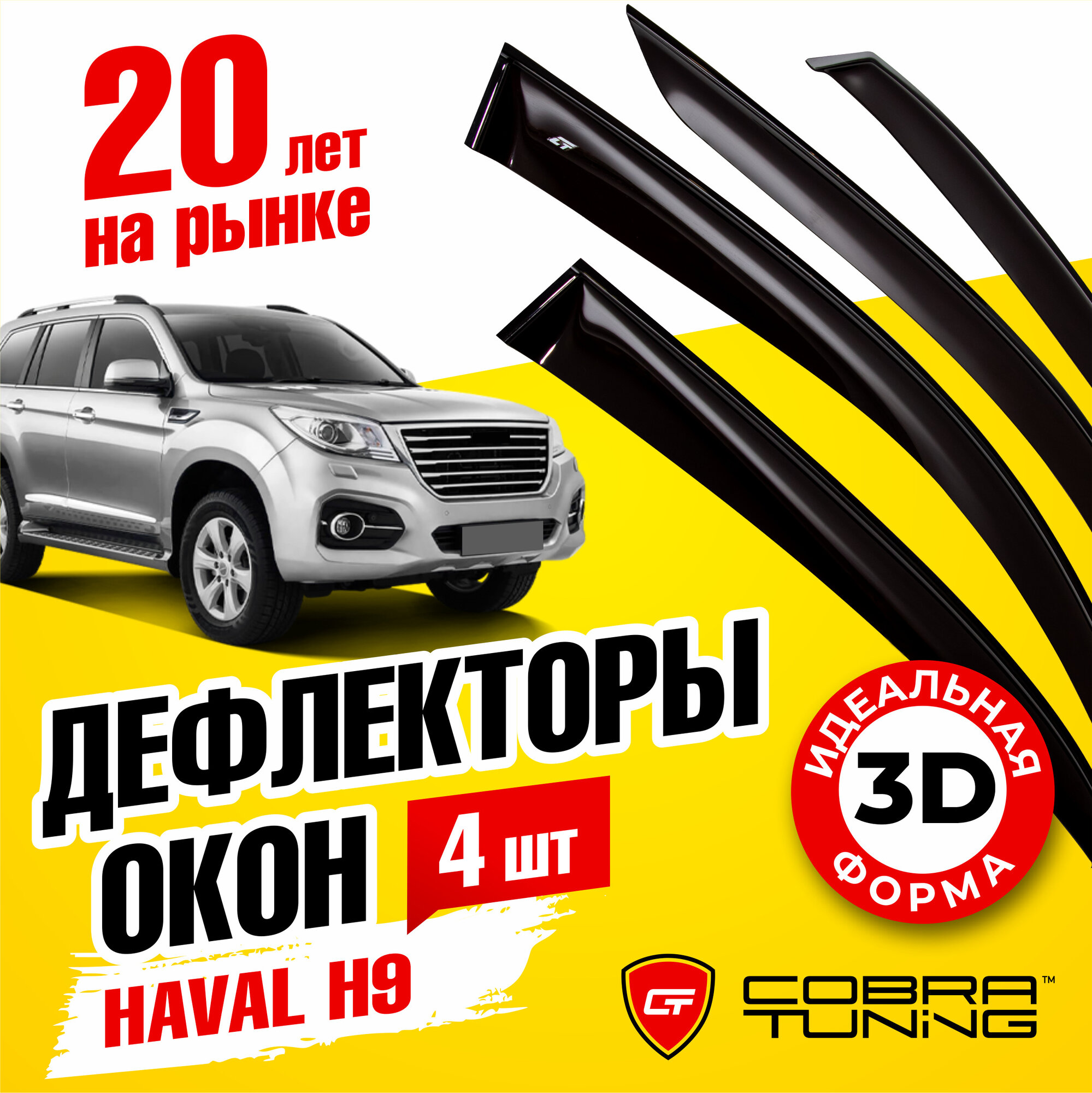 10 цен на Дефлекторы боковых окон для Haval H9 (Хавал) 5-ти дверный 2015-2022, ветровики на двери автомобиля, Cobra Tuning