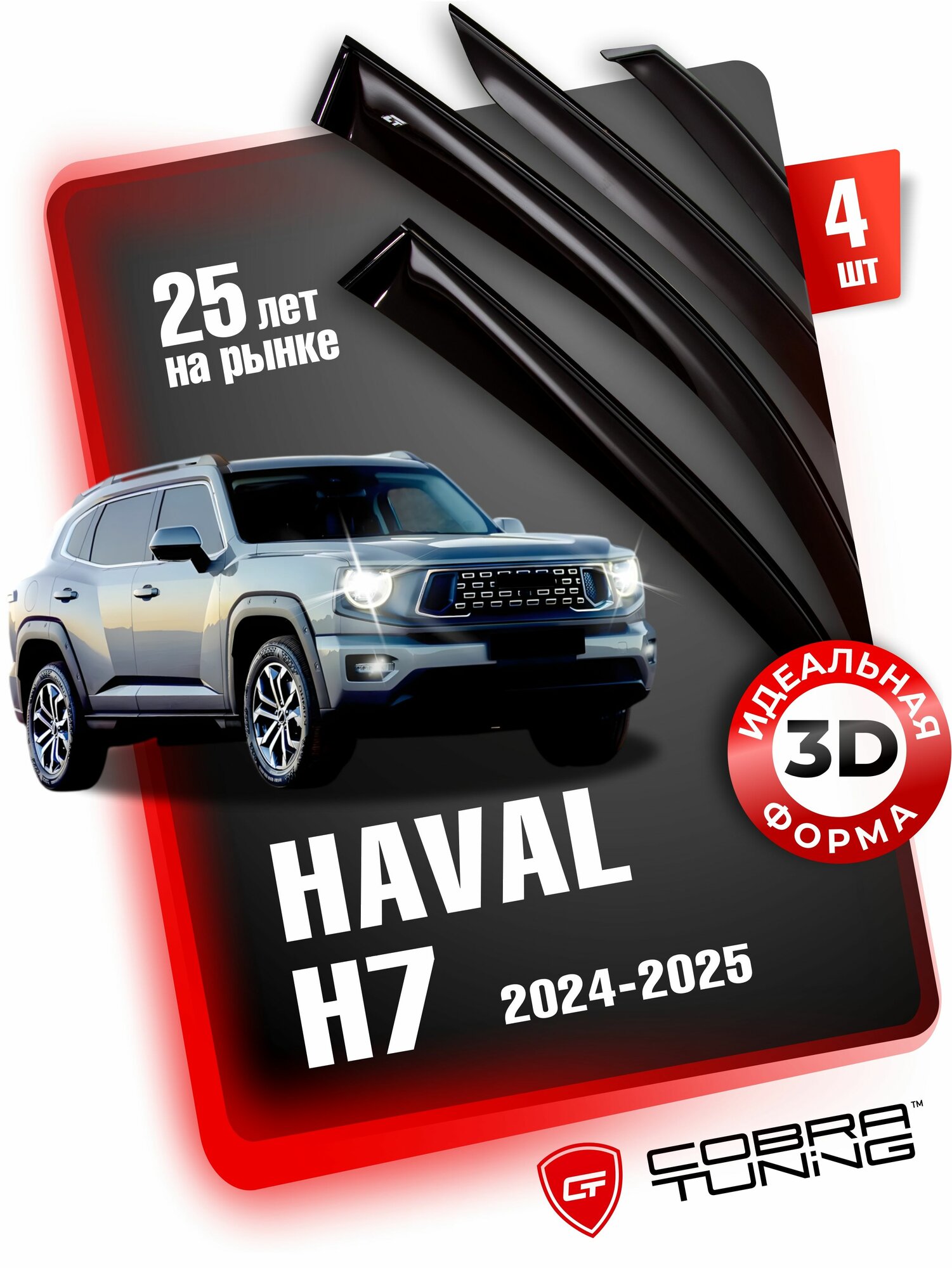 Дефлекторы боковых окон для Haval H7 2024, 2025 (Хавал, Хавейл, Хавэйл Н7, аш 7), ветровики на двери автомобиля, Cobra Tuning. информация: