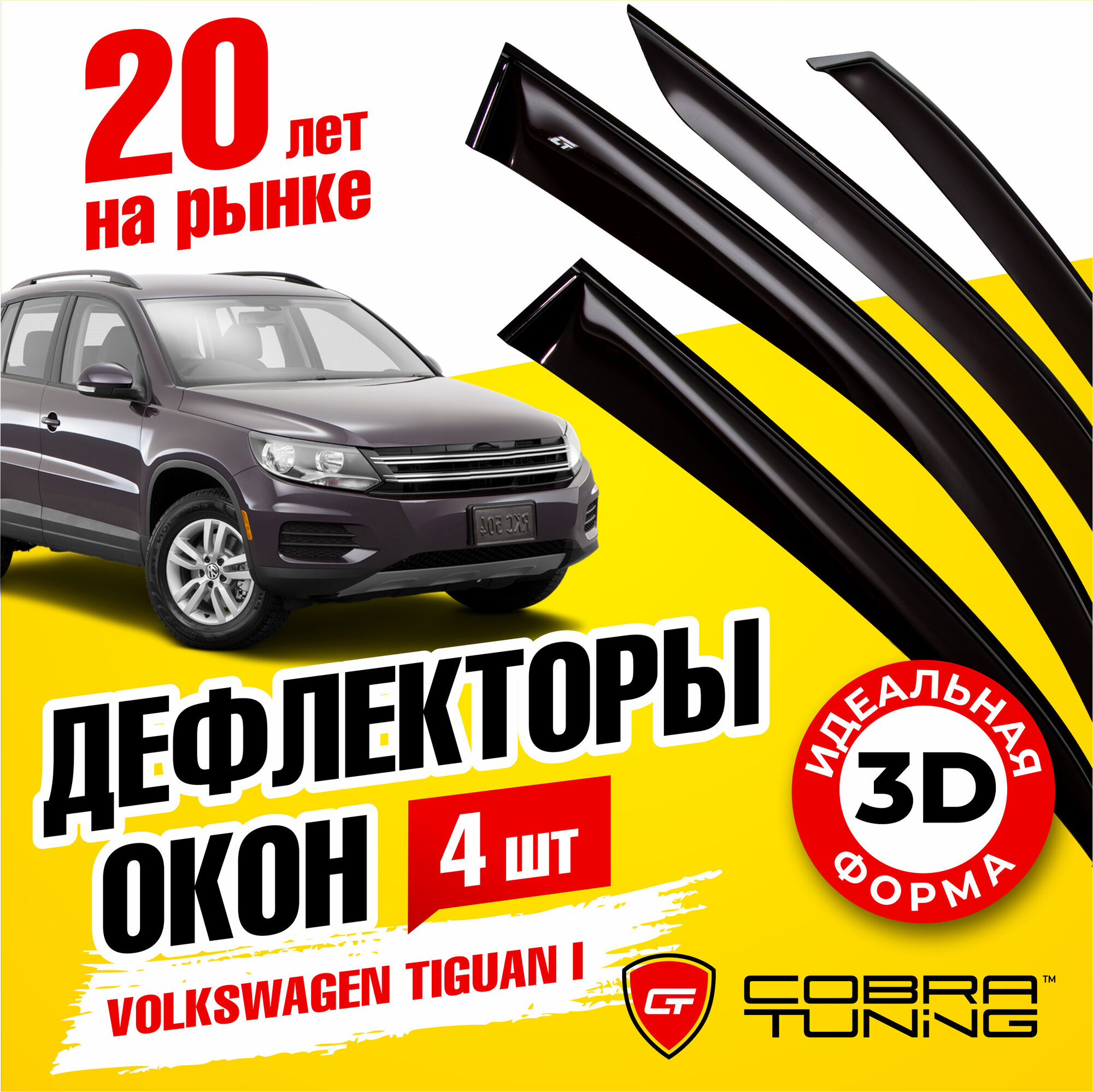 Отзывы на Дефлекторы боковых окон для Volkswagen Tiguan (Фольксваген Тигуан) 2008-2016, ветровики на двери автомобиля, Cobra Tuning